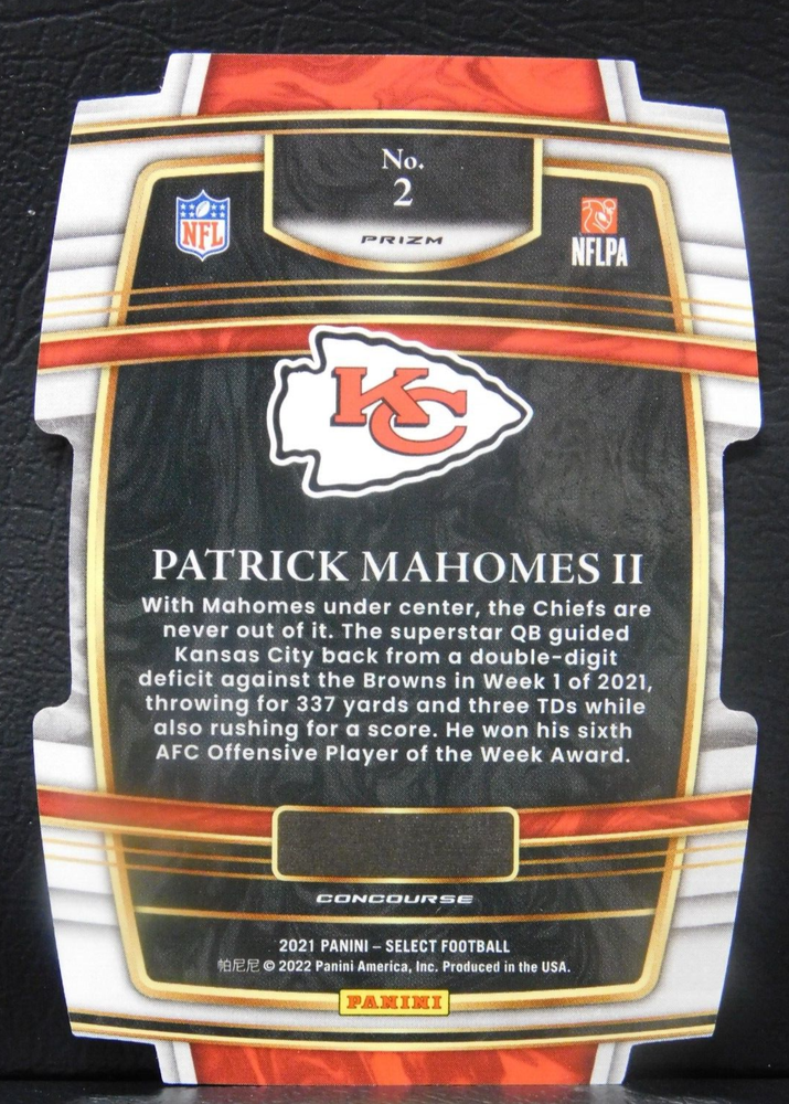 PATRICK MAHOMES II 2021 Panini Select Die Cut Red/Yellow Color Match KC Chiefs Unless otherwise noted, no cards have been professionally graded. Any description of condition is based on my 35 years of collecting experience. Unless otherwise noted, all cards are placed in penny sleeves and top loader, packaged for protection with thin cardboard. This item ships with Ebay Standard Envelope.