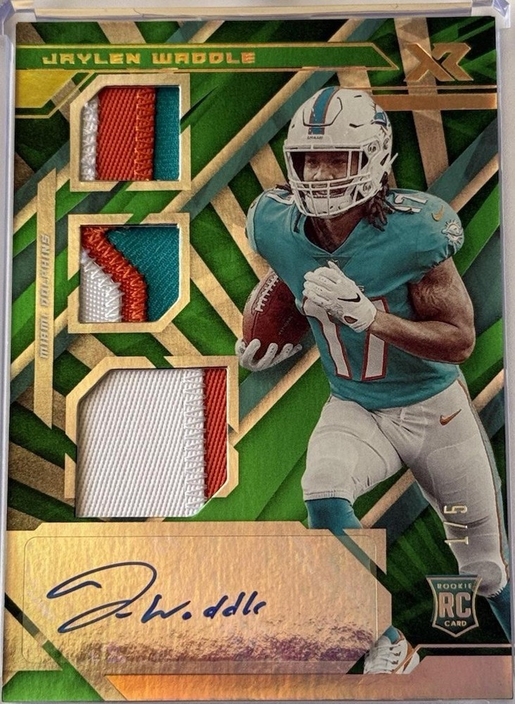 2021 Panini XR - Rookie Triple Swatch Autographs Jaylen Waddle #206 Green /5