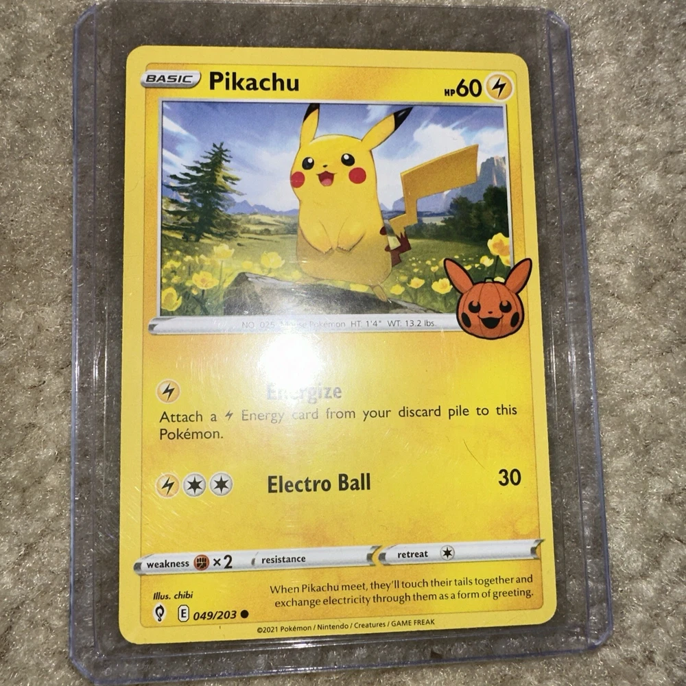 This 2021 Pikachu Pokemon Halloween Trick Or Trade Common #049/203 (B) card is a must-have for any fan of the Pokemon Trading Card Game. With its unique design and rarity, this card is perfect for collectors and players alike. Featuring Pikachu in a spooky Halloween costume, this card is sure to add some fun to your collection. The card is manufactured in 2021 and is a Pokemon type card with the card number 049/203. Add this card to your collection today and complete your set!