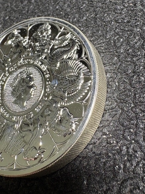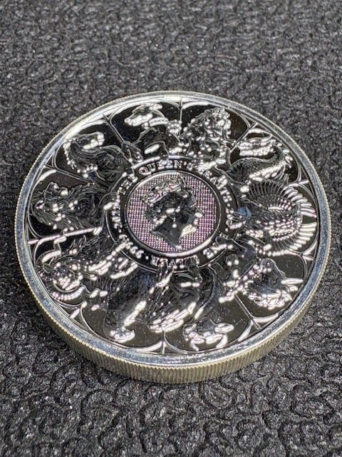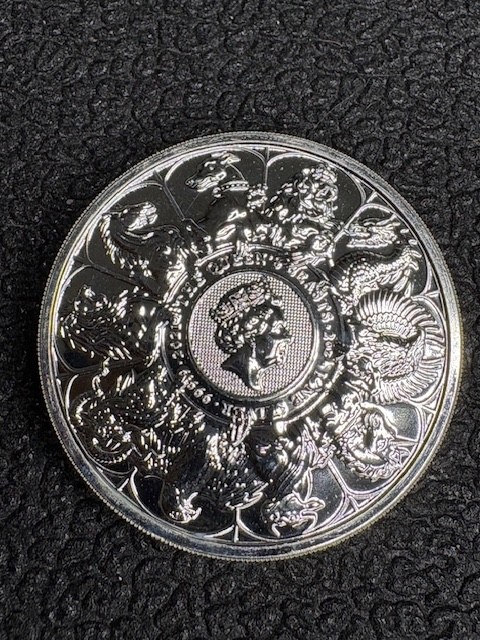 2021 Queen's Beasts Collection Completer Coin 2 oz 0.9999 Silver - Last in Series Coin carefully removed from Mint tube When the Royal Mint introduced the Queens Beast Series in 2016, it not only embarked on a new coin design series that would run for six years, but it also introduced a new bullion weight it had never offered before. Prior to the debut of the British Silver Queens Beast Coins, there had never been a 2 oz silver bullion coin from the mint. Coin Highlights: 11th and final coin design in the Queens Beast Series Includes all 10 heraldic beasts on the reverse! Contains 2 Troy oz of .9999 pure silver in BU condition. Bears a face value of 5 Pound sterling (GBP) backed by the government of Britain. The obverse side depicts Queen Elizabeth II. On the reverse is an effigy of the Queen with the 10 heraldic beasts. Each of the 2021 2 oz British Silver Queens Beast Collection Coins available here comes in Brilliant Uncirculated condition. The 2 oz silver coins in the Queens Beast Series are available individually in plastic flips or by multiples of 10 in acrylic tubes. The final release in the Queens Beast Series doesnt feature a new heraldic beast, but rather, all 10 beasts introduced to collectors and investors from 2016 to 2021. The final piece in the series brings together all 10 of the Queens Beasts as passed down to her over the course of 1,000 years of history for the British monarchy. Each design in the series was created by Jody Clark, the same man who created the definitive fifth-generation portrait of the Queen that now graces British coins. The obverse side of 2021 British Silver Queens Beast Collection Coins comes with the fifth-generation portrait of Queen Elizabeth II. Developed in 2015 by Jody Clark, this image showcases the Queen in right-profile relief with the George IV State Diadem Crown on her head. The effigy of the Queen is set against a guilloche background element that offers security against counterfeiting. On the reverse field of the 2021 2 oz Silver Queens Beast Collection Coin, you will find the same portrait of the Queen shrunk in size to fit into a smaller portion of the coins central field. Around the effigy of the Queen, each one of the 10 heraldic beasts surrounds the Queen. From the Lion of England to the White Greyhound of Richmond, the beasts that have supported the Royal Arms of England over the last 1,000 years now surround the realms longest-reigning monarch. Mintage is to be determined.