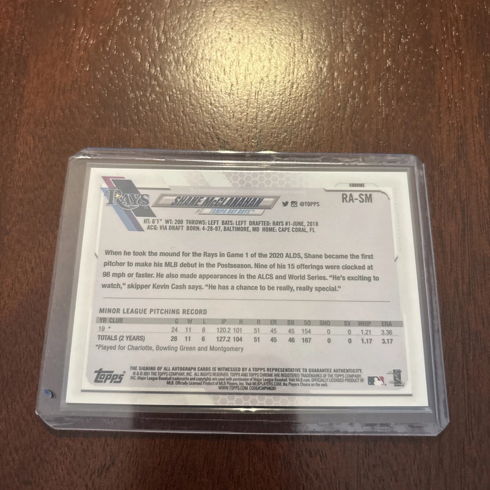 2021 Topps Chrome - Rookie Autographs #RA-SM Shane McClanahan (AU, RC)