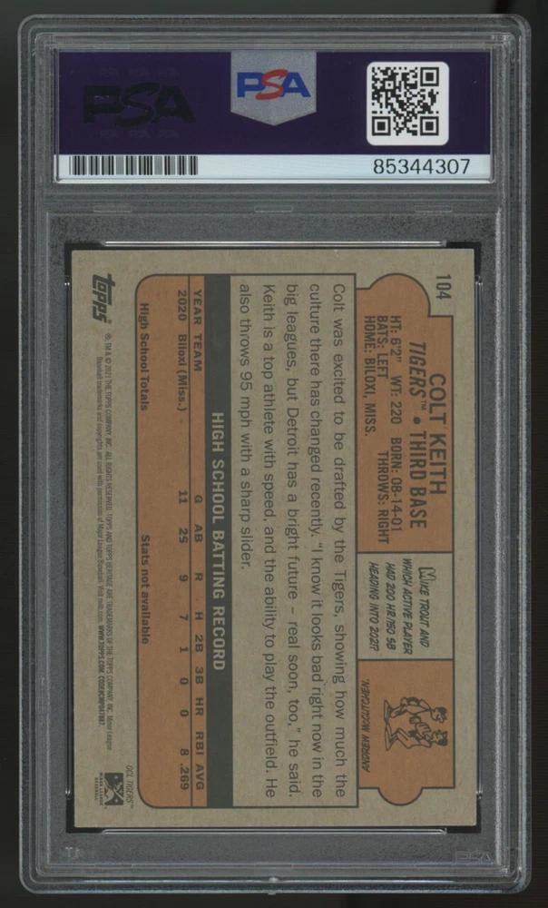 2021 Topps Heritage Colt Keith #104 Signed Auto PSA Authentic