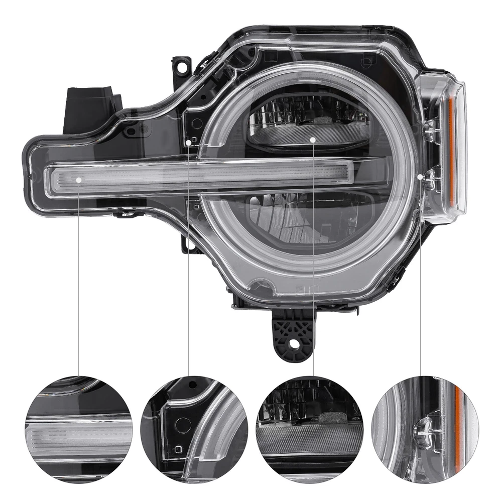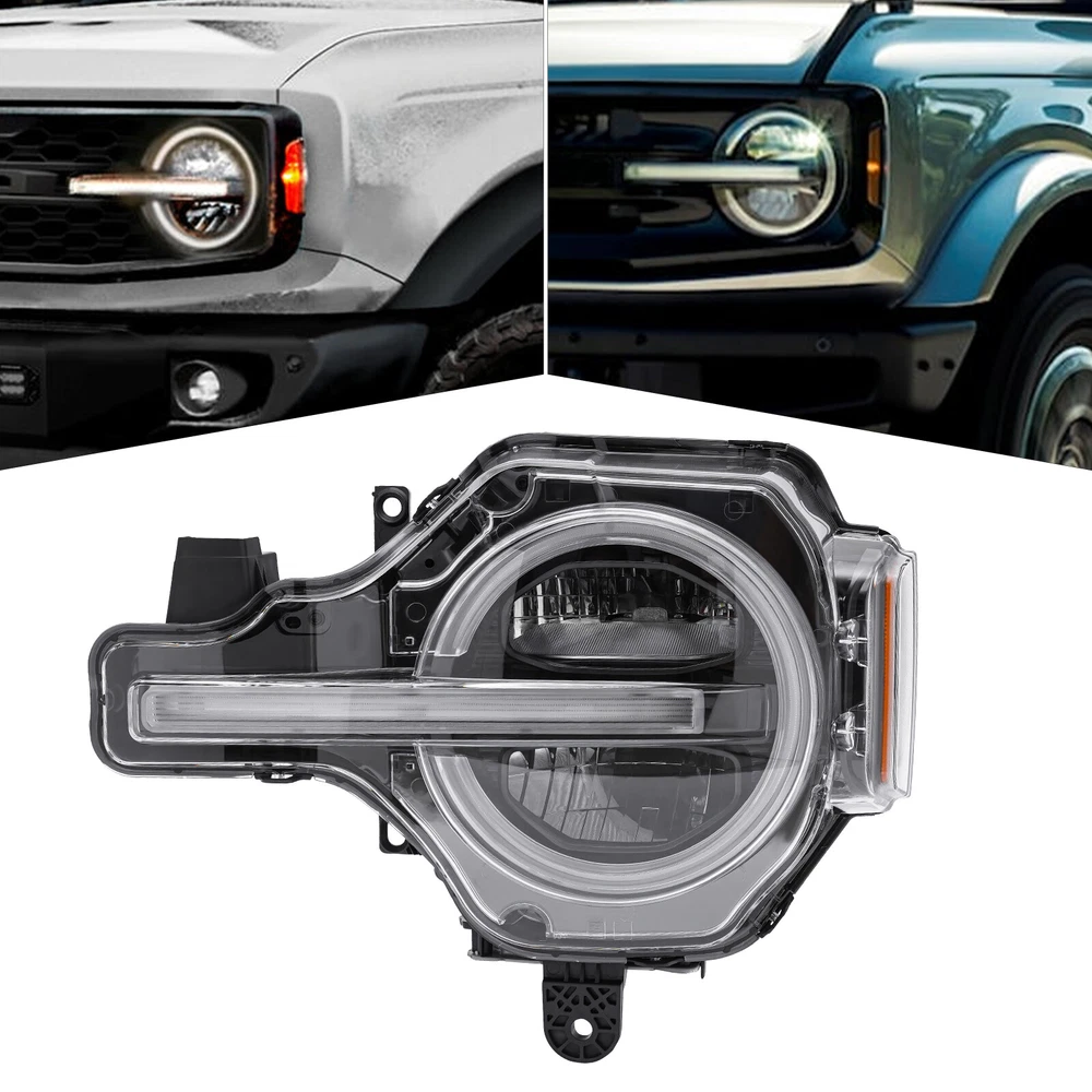 [FULL LED] For 2021-2023 Ford Bronco Driver Side Headlight w/ LED Halogen LH Left Side LED Headlight, Headlamp Assembly, Headlight Fits 21-23 Ford Bronco Specifications Manufacturer Part Number: M2DZ13008F Interchange Part Number: M2DZ13008F OE/OEM Part Number: M2DZ13008F Applicable Models: For 2021-2023 Ford Bronco Condition: New Material: PC, ABS Housing Color: Black Lens Color: Clear Light Color: White Voltage: 12V Type: Headlight Assembly Light Source Type: LED High Beam Light: LED (Included) Low Beam Light: LED (Included) Turn Signal Light: Halogen (Included) Side Marker Light: LED (Included) LED Daytime Running Light: Yes Installation Position: Front, Left Way of Use: Direct Replacement Assembly Method: Closed Gross Weight: 6kg/13.23lbs Package Size: 55*43*36cm/21.65*16.93*14.17in Key Features Durable Material: This product is made of high-quality ABS and PC, which is impact-resistant and rustproof , allowing it to be used for a long time. Safe Driving: The energy-saving and bright LED light source can accurately transmit information when driving at night, greatly reducing the risk of collisions and providing a security guarantee for you and your family. Good Compatibility: This product is a customized product, specially customized for the 2021-2023 Ford Bronco, so it can be compatible with the adapted models. Highlights Brand New, With High Quality Improve Driving Safety Trouble-free Installation Exquisite Craftsmanship Direct Replacement Stylish Appearance Long Service Life Easy to Clean Notes We strongly recommend professional installation. Please double-check compatibility before purchasing to ensure proper fit. Please note that due to temperature differences, air pressure, and other reasons, condensation inside the headlights is a normal phenomenon. Please allow for slight color differences caused by shooting light and errors caused by manual measurement, and make sure you don't mind before ordering. If you have any questions, please contact us, and we will reply and solve your problem as soon as possible. Fits (As a Reference) For 2021-2023 Ford Bronco OE/OEM Part Number: M2DZ13008F Package Included 1* Left Headlamp Payment Delivery details Terms of sales About us Contact us Payment We accept ebay payment 。 Fees such as import duties, taxes are not included in the item price or shipping costs. These charges are the buyer's responsibility. Delivery details Shipping: 2-9 working days to: USA Terms of sales We maintain high standards of excellence and strive for hundred percent customer satisfaction. Feedback is very important to us. We hope that you contact us immediately before you give neutral or negative feedback, so that we can address your concerns. It is impossible to address issues if we do not know about them! About us Your satis faction is our ultimate goal. We work hard to earn your trust and future business. Our certified technicians have tested each item before shipping. The unit comes with 1 year limited warranty on all manufacturing defects. a) If you receive a defective item, you may return it or ask for a discount. Please contact us within 14 days after you receive the package. b) What you returned must be intact and in its original packaging as re? u. Customer is responsible for shipping costs of the returned item. c) We will cover the cost of shipping back t with the shipping rate indicated in the registration page. We will send you a new unit or refund the full payment you paid. Thank you. Contact us Business Hour Business Hour: Monday To Friday: 8:30 AM to 5:00 PM (Beijing China time) Due to time zones, our reply to your questions may not be immediately. But within above working time, we will reply your email within 24 hours. If it's non-workdays, please kindly be patient and wait till Monday. Please contact us with ebay message. Please feel free to contact us if you have any questions. Monday To Friday: 8:30 AM to 5:00 PM (Beijing China time) Due to time zones, our reply to your questions may not be immediately. But within above working time, we will reply your email within 24 hours. If it's non-workdays, please kindly be patient and wait till Monday. Please contact us with ebay message. Please feel free to contact us if you have any questions.