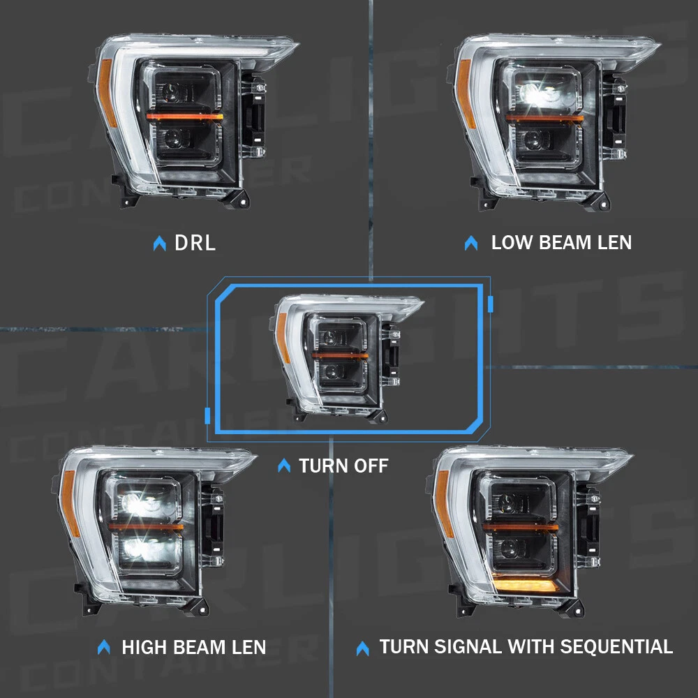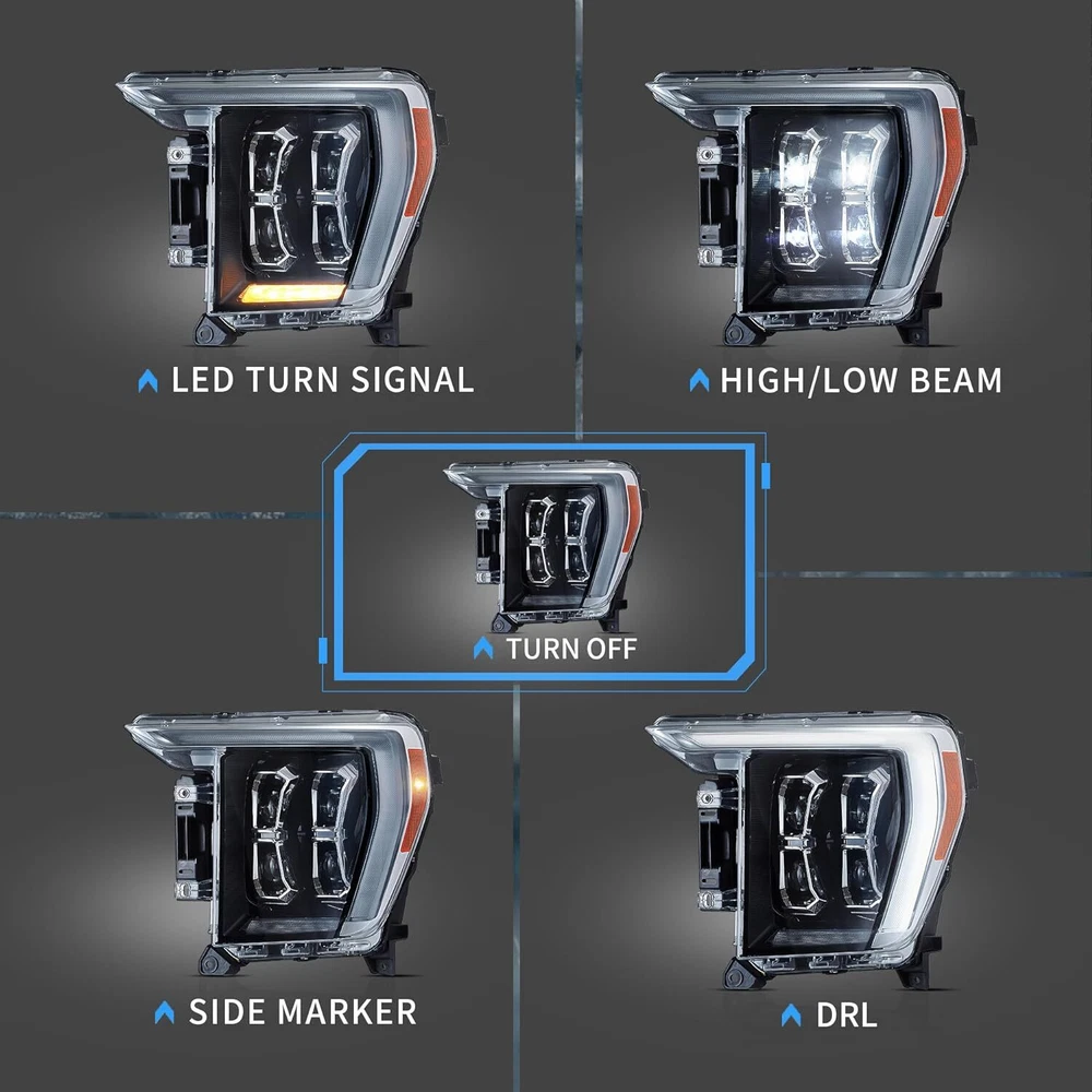 FULL LED Headlights For 2021 2022 2023 Ford F150 F-150 Headlamps Animation Pair Fitment: Ford F150 2021 2022 2023 Fits the following Vehicles: 2021-2023 Ford F150 King Ranch Crew Cab Pickup 4-Door Lariat Crew/ Extended Cab Pickup 4-Door Limited Crew Cab Pickup 4-Door Platinum Crew Cab Pickup 4-Door Police Responder Crew Cab Pickup 4-Door SSV Crew/ Extended Cab Pickup 4-Door Tremor Crew Cab Pickup 4-Door XL Crew/Extended Cab Pickup 4-Door XL/ XLT Standard Cab Pickup 2-Door XLT Crew/ Extended Cab Pickup 4-Door Compatible with factory halogen version, xenon version, LED version all versions. Item Features Projector Headlights(Style D ) : Running Light: LED (Diamond White or Amber) (Optional) Turn Signals: LED (Amber. With Sequential Turn Signal) (Optional) Low/High Beam: Full LED , no need bulbs. Start-up Animation: With Start-up Animation (Optional) Full LED Headlights, no need bulbs. Item Features Projector Headlights(Style A & B ) : Running Light: LED (Diamond White) Turn Signals: LED (Amber) Low/High Beam: Full LED , no need bulbs. Full LED Headlights, no need bulbs. Item Features Reflector Headlights: Running Light: LED (Diamond White) Turn Signals: LED (Amber) Low/High Beam: Full LED , no need bulbs. Full LED Headlights, no need bulbs. Description: The package includes: 1 pair of headlights with left side & right side . This item has the same connections and wires with the original headlights. It is easy to install still professional installation is recommended. Warranty: One Year You May Also Like: 👇 SPECIFIC ABOUT PAYMENT RETURN SPECIFIC ABOUT PAYMENT RETURN VLAND Headlights VLAND Tail Lights VLAND Combination Set VLAND Bulbs For Chevrolet For Dodge For Ford For Honda For Mitsubishi For Hyundai For Lexus For Toyota For BMW For GMC For Volkswagen For Tesla For Subaru For Benz For Canada only For Nissan For Mazda For Cadillac For Australia Only Star Items For European Union only For Germany Only For France Only For Discount Area For Jeep For Chrysler For United Kingdom Only Other On Jun 23, 2025 at 12:15:47 PDT, seller added the following information: