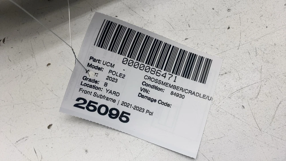 Donut Auto Dismantling Donut Auto Dismantling Rancho Cordova, CA Business Hours (PST/PDT) Mon - Fri 8am - 5pm Closed Sat & Sun Crossmember/cradle/undercarria Year: 23 Model: POLESTAR 2 Side: Type: Used Category: W Condition: 84930 Vehicle Stock #: 25095 Part Stock #: 0000086471 Additional notes: Front Subframe | 2021-2023 Polestar 2 Front Drive Unit Engine Subframe Crossmember Oem 31686305 Interchange: Also fits: Search for more parts from this donor vehicle Search for more parts for POLESTAR 2 Dear Valued Customers Before ordering, please verify the part number and compare the physical details of your part with the photos in our listing. Tesla sometimes changes parts within the same model year, so even if the year matches, variations may exist. Examine all photos and read the description. Please contact us and ask any questions you have about the item. What you see in the pictures is what you will receive. Item are sold as Pictured in our ads, All the damages are marked in pictures with colored markings ........ indicated scratches, O indicate dents/dings view all photos and description. All Parts come with a 60-Day warranty Compatibility We are not responsible for compatibility, please order parts with the same part number to avoid delays and fitment issues in your purchase. Always verify O.E.M part numbers check fitment. Shipping & Return Policy For LTL and freight shipments: Please inspect an item before signing. For LTL and freight shipments of large items like Battery Packs, Seats, Doors, Trunks, Hoods, and other sizable body parts, a commercial address is mandatory . This must be a business equipped with a dock or forklift. Please note that deliveries cannot be made to restaurants, office buildings, or hotels. Please allow 5-11 business days from the shipping date to receive freight items. If a forklift is not available to unload your package, please ensure that you added liftgate service fee to your order. Residential deliveries have an extra charge required by LTL to cover liftgate usage and city ordinance. Be advised not all LTL freight companies offer lift gate services in every town especially in rural areas. If you do not have a commercial address or a proper residential address reach out to us to work things out LTL items can always be held at your local hub and made available for pickup. We offer free local pickup Monday through Friday, from 8:00 AM to 5:00 PM. What separates us from our competitors As Pioneers in the Tesla used parts market Donut Auto Parts is leading in the industry. We have been specializing in Tesla's for over 5 years. Our Staff are highly trained and experienced Tesla specialists. We strive to help you solve all your part needs. Local Customers For our local customers we provide installation on battery packs and drive units purchase. Drive unit and battery pack installations come with a 60 day warranty . All parts are fully tested. Using the industries leading tools, we also provide installation of other parts. Please reach out to us directly for more information. Be Advised Programming may be required for most electronic components. Donut Auto Parts is not responsible for any labor costs and other charges such as programming. NO RESTOCKING FEE Payment Payment must be submitted within 48 hours after purchase time. We have a Same handling time when paid by 2pm pst and 3-day handling time for LTL freight items. Feedback and Rating We always Strive to earn positive feedback. If you encounter an issue with one of our items, please contact us before leaving any feedback or opening a case give us the opportunity to solve your order issue. We strive to provide excellent customer service to ensure that everyone is satisfied, and to gain happy and returning customers! ALLOW US TO RESOLVE ISSUES BEFORE LEAVING YOUR FEEDBACK PLEASE CONTACT US FIRST Airbag Notification If the item above is an airbag, I certify this airbag is not subject to recall and will be shipped in accordance with hazmat shipping requirements . Powered by Checkmate