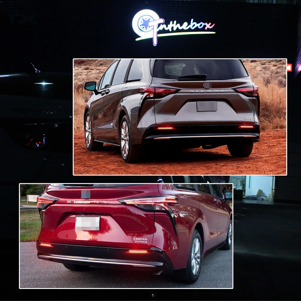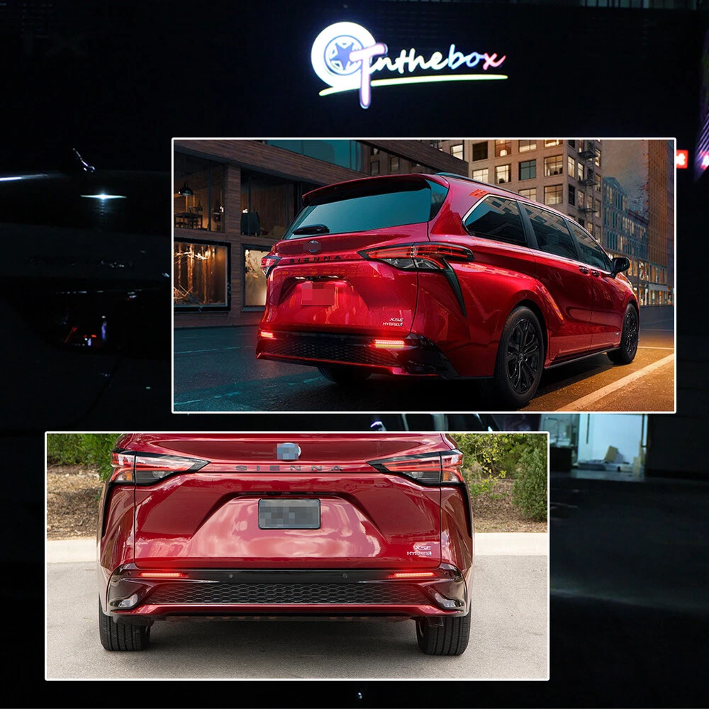 For Toyota Sienna 2021-2023 Smoke Red LED Rear Bumper Fog Brake Signal DRL Light For Toyota Sienna 2021-2023 Smoke Red LED Rear Bumper Fog Brake Signal DRL Light Want to give your Sienna an unique and sporty look with increased safety and style? This page features a set of brand new 3D optic smoked lens red LED rear bumper reflector tail brake lights w/ sequential turn signal lights, rear fog lighting kit For 2021- 2023 Toyota Sienna 3 Functions: Replaces the OEM rear bumper bulb-less reflectors with LED as add-on tail lights (50% Red Brighter) , brake lights (100% Red Brighter) and turn signal lights ( Dynamic Sequential Red Lighting). Give your Sienna upgraded rear LED lighting for increased safety and style at night! Exact fit and direct replacement, super bright LEDs have a faster on/off response time for driving safety & perfect design enhances your car's exterior look Just Plug and Play , Easy to install, save more install time Feature: Smoked lens LED Color: Red P owered by high power LED SMD Brilliant Red LED color Fits for 2021 2022 2023 Toyota Sienna It replaces the stock Rear Bumper Red Reflector Assembly and functions as Add-on LED Tail Running / Rear Fog Light (50% Red Brighter) , Brake Stop Light (100% Red Brighter) and Sequential Red Turn Signal Indicator Light in OEM fitment Plug and Play, Easy to install DOT SAE approved Gives car a different appearance that is ideal for show use Lifespan: 50,000 hrs Specification: T ype of Lights: LED Rear bumper tail brake signal light (3 in 1) with smoked lens reflector Waterproof: IP67 Lens color: Smoked Light color: Red Installation position: Rear Bumper Reflectors Ultrasonically sealed L ow power consumption; Quick Instant Start-Up time Fit for: For 2021 2022 2023 Toyota Sienna Package included: One Pair (L&R) LED Rear Bumper Reflector Lights One Pair Plug & Play Connectors Installation: To install these LED bumper reflectors, you simply need to access to the back of the rear bumper, push to remove the stock bumper reflectors and directly replace back with these LED reflectors and then tap the wires accordingly. Plug and Play, Easy to install. Note: Professional installation is highly recommended! Payment Delivery details Terms of sales Contact us Feedback Payment We only accept payment via PayPal. Please make sure shipping address on your PayPal account is correct and up-to-date. Payment from bank account and all major credit cards will be accepted through secure payment processor PayPal. Delivery details Item will be shipped to buyer's PayPal shipping address within 1 business day after clear payment received. Tracking number of domestic orders will show up on buyer's eBay account once order is shipped. Please make sure shipping address on your PayPal account is correct & up-to-date. All of our items are shipped from our GA, USA warehous e. * Please note that post office doesn't process parcel on Saturday, Sunday & public holidays. Terms of sales Warranty policy: This item comes with 60 day exchange (replacement) warranty. Buyer could choose exchange to same item or apply store credit to other items in our store. Exchange will be processed after we received return. We only accept refund request for un-opened or un-used item, buyer has to return item in original condition and retail package within 30 day. 20% restocking fee will be deducted for all refund cases. Refund will be processed after we received return. Buyer is responsible for return shipping cost of ALL exchange/refund cases. We will cover shipping cost when sending out replacement. Products that are modified/customized are NOT covered by our return/exchange policy. Compatibility issue: Please check actual stock bulb model & housing size before purchasing replacement bulbs. Compatibility list on eBay listing is not a complete list and it is a known issue that there are errors on it. If you encounter model/functional compatibility issue, please contact us for assistance. We will help you exchange to compatible item (if available). We only accept refund request if we don't carry compatible item. 20% restocking fee will be deducted for ALL refund cases. Buyer is responsible for both return and resend shipping cost when exchanging an item with compatibility issue. We will cover resend shipping cost if compatibility problem is directly caused by incorrect information on listing. Buyer will be charged for price difference when upgrading to a more expensive model. Contact us Should you have any question/concern regarding our item/auction, please feel free to send us an eBay message. We will answer your question in a timely manner (within 12 hours in most cases). Reply will show up on your eBay account and goes to the email address associated with your eBay account. If you don't receive our reply within 2 business day, please kindly check your junk-mail box. If you are interested in bulk order, please contact us for a quote. Feedback We appreciate your business and strived to improve our customer service and our commitment to quality. We will leave a positive feedback immediately after payment is received. We appreciate a positive feedback as much as you do. If for some reason there is any issue with the purchase, please contact us prior to leaving feedback, and we will be glad to work with you to have it resolved.