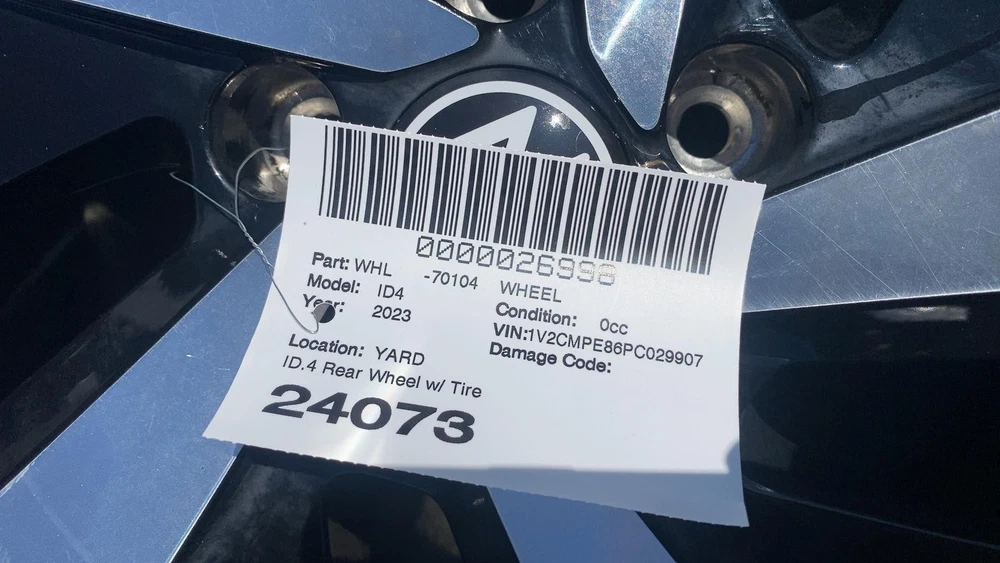 Donut Auto Dismantling Donut Auto Dismantling Rancho Cordova, CA Business Hours (PST/PDT) Mon - Fri 8am - 5pm Closed Sat & Sun WHEEL Year: 23 Model: VOLKSWAGEN ID4 Side: Type: U Category: ND Condition: 0cc Vehicle Stock #: 24073 Part Stock #: 0000026998 Additional notes: 2021-2023 Volkswagen ID.4 Rear Wheel Rim 19x8 w/ Kumho Crugen Tire 235/55 R19 Interchange: 19x8 (alloy) Also fits: VOLKSWAGEN ID4 23 19x8 (alloy) Search for more parts from this donor vehicle Search for more parts for VOLKSWAGEN ID4 Dear Valued Customers Examine all photos and read the description. Please contact us and ask any questions you have about the item. What you see in the pictures is what you will receive. Item are sold as Pictured in our ads, All the damages are marked in pictures with colored markings ........ indicated scratches, O indicate dents/dings view all photos and description. All Parts come with a 30-Day warranty Compatibility We are not responsible for compatibility, please order parts with the same part number to avoid delays and fitment issues in your purchase. Always verify O.E.M part numbers check fitment. Shipping & Return Policy For LTL and freight shipments of large items like Battery Packs, Seats, Doors, Trunks, Hoods, and other sizable body parts, a commercial address is mandatory . This must be a business equipped with a dock or forklift. Please note that deliveries cannot be made to restaurants, office buildings, or hotels. Please allow 5-11 business days from the shipping date to receive freight items. If a forklift is not available to unload your package, please ensure that you added liftgate service fee to your order. Residential deliveries have an extra charge required by LTL to cover liftgate usage and city ordinance. Be advised not all LTL freight companies offer lift gate services in every town especially in rural areas. If you do not have a commercial address or a proper residential address reach out to us to work things out LTL items can always be held at your local hub and made available for pickup. We offer free local pickup Monday through Friday, from 8:00 AM to 5:00 PM. What separates us from our competitors As Pioneers in the Tesla used parts market Donut Auto Parts is leading in the industry. We have been specializing in Tesla's for over 5 years. Our Staff are highly trained and experienced Tesla specialists. We strive to help you solve all your part needs. Local Customers For our local customers we provide installation on battery packs and drive units purchase. Drive unit and battery pack installations come with a 60 day warranty . All parts are fully tested. Using the industries leading tools, we also provide installation of other parts. Please reach out to us directly for more information. Be Advised Programming may be required for most electronic components. Donut Auto Parts is not responsible for any labor costs and other charges such as programming. NO RESTOCKING FEE Payment Payment must be submitted within 48 hours after purchase time. We have a Same handling time when paid by 2pm pst and 3-day handling time for LTL freight items. Feedback and Rating We always Strive to earn positive feedback. If you encounter an issue with one of our items, please contact us before leaving any feedback or opening a case give us the opportunity to solve your order issue. We strive to provide excellent customer service to ensure that everyone is satisfied, and to gain happy and returning customers! ALLOW US TO RESOLVE ISSUES BEFORE LEAVING YOUR FEEDBACK PLEASE CONTACT US FIRST Airbag Notification If the item above is an airbag, I certify this airbag is not subject to recall and will be shipped in accordance with hazmat shipping requirements . Powered by Checkmate
