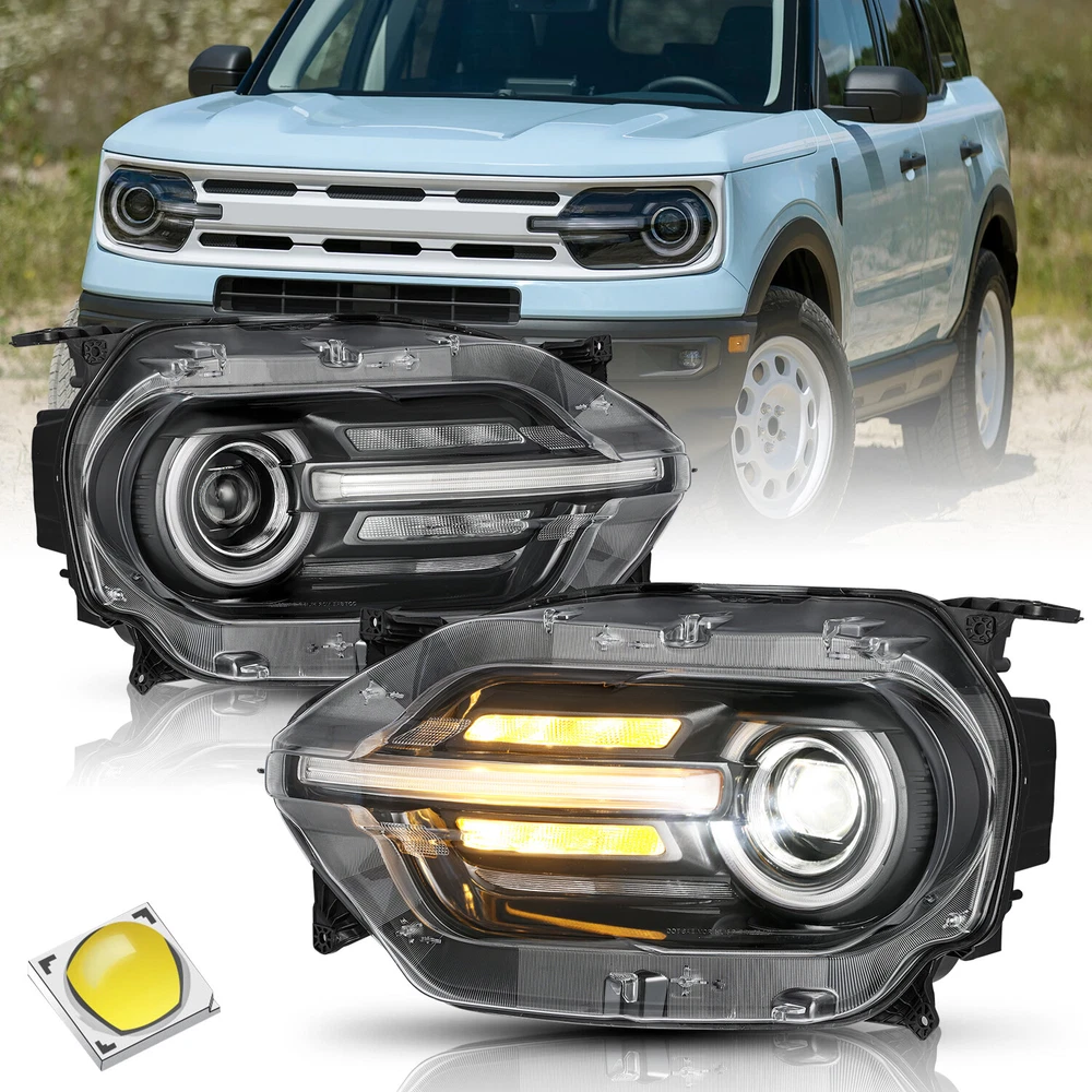 Store Categories Store Categories Headlight Tail light Other FULL LED Headlamps For 2021-2024 Ford Bronco Sport w/ LED Signature Headlights Product Description Product descri p tion: 1 00% Brand New in Box With Customized Packaging and high-quality he adlight assembly replacement Made by an ISO certified manufacturer using materials that meet strict OEM requirements Unless Otherwise Noted, our Lights Do Not Include Bulbs Direct Bolt On Replacement For Your Original Headlights, No Wiring or Any Other Modification Needed Vehicles Types Compatibility: For 2021-2024 Ford Bronco sport w/ LED Signature Headlight Compatible w/ LED Signature Lighting Headlight Models Only Not Compatible w/o Signature Lamp Headlight Models Installation procedure: A. Consult your vehicle manual to know the structure of headlight assembly. B. Find the adjustment screws. C. Adjust the headlights separately. D. Adjust the vertical beam. Screw clockwise to turn the light up. Screw anticlockwise to turn the light down. E. Make sure that the assembly is sealed and then test your results. Package included: 1 Headlight. Bulbs are included Payment Policy Shipping Policy Returns Policy Contact us Feedback Payment Policy We accept PayPal and all forms of credit card. Shipping Policy 1.We ship package directly from our CA warehouse by UPS Ground(2-5working days) or FedEx Ground(2-5working days).If you want to choose faster shipping way like Overnight Shipping.Please contact us ASAP. 2.The Item will be sent to the buyer's address registered in PayPal ONLY. If the address is not correct, please make alternation before you pay. 3.Tracking number will be provided. 4.Inspect all item upon arrival, if you found the item broken or defective, please notify us within 7 days. No claim will be accepted after 7 days. Returns Policy In the event that you would like to return your purchase, we allow returns that are processed within the defined return date (the return date is to be found in the return policy/shipping and handling section) The item must be return in good condition with original packaging and accessories, and never installed or mounted. Contact us Note: If u have any problem, complaint, advise, please give us eBay message First Before Any Feedback. We will reply your message and solve your problem during working time(Except Holiday)ASAP. Feedback Customer satisfaction is very important to us. If you have any problem with your order,please contact us and we will do our best to make you satisfied, please do not leave a negative feedback before we resolve your problem.We guarantee that your issue will be solved quickly. As long as you are happy with your purchase of , please leave us a positive feedback.Your feedback is very important to us it affects our search placement on eBay. We will leave a positive feedback for you in return automatically once we receive your feedback. Copyright © 2023 Dianxiaomi