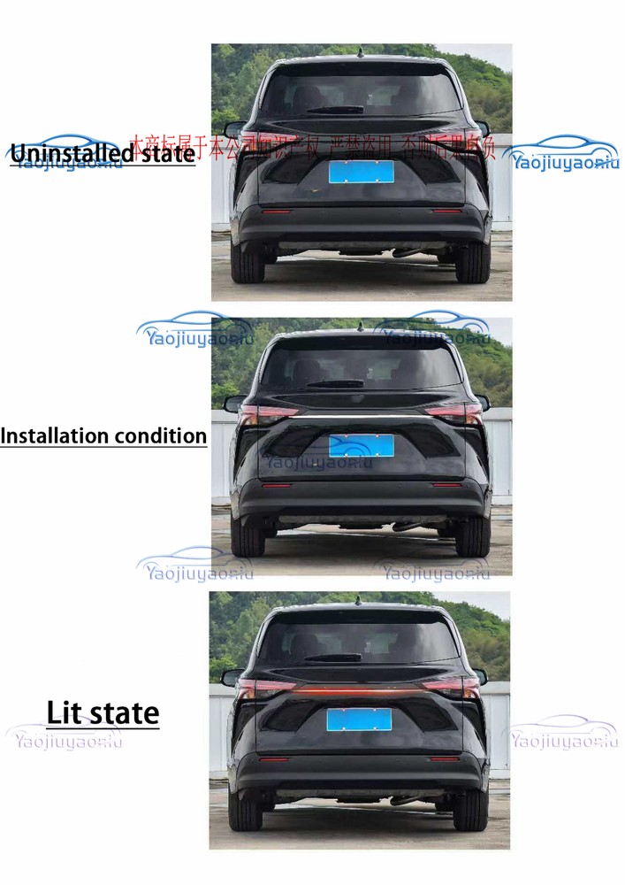 For Toyota Sienna 2021-2024 Through tail light LED rear taillight warning light Description Fitment : For Toyota Sienna 2021-2024 Specific Condition : 100% Brand new Color: As Pictures Include: 5PCS Material: Made of High Quality Plastic+LED Easy installation,If you cannot install it, it is recommended to ask professionals to install it Strict Factory QC test ,High Quality guarantee Features 1. 100% brand new and high quality guaranteed 2. Decorate your car charming luxury vivid 3. Easy to use and to operate at affordable prices 4. Perfect cover that is useful,helpful and so practical 5. Easy to use and to operate Please check and confirm this things fits yours before buying. The picture has been processed by PS and may be a little different from the actual product. Please refer to the actual product received