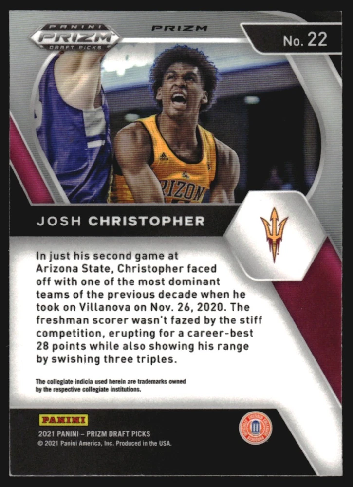 2021-22 Panini Prizm Draft Picks Prizms Red White and Blue #22 Josh Christopher Front Back Sport: Basketball Set: 2021-22 Panini Prizm Draft Picks Prizms Red White and Blue Year: 2021 Item#: 22 Player: Josh Christopher Brand: Panini Prizm Draft Picks Manufacturer: Panini Group Grading Company: Raw Grade SetType: Parallel Item Condition: Near Mint/Mint 2014 Beckett Collectibles, LLC. All Rights Reserved Powered by: Thank you for choosing Burbank Sportscards, the sports cards superstore. We offer a large selection of singles across all sports. Visit our ebay store to view all our items available. Our Shipping Policy We offer Free Standard Shipping to all Domestic customers. Options for Expedited shipping are also available at checkout. For our international customers, shipping is $9.99 for the first item, and $0.25 for each additional item. Note to all customers: To qualify for combines shipping, we ask our customers to add items into the shopping cart. Please note, we do not combine orders that are placed separately. Our Service: Generally, our turnaround is super quick as we process and send out orders same day payment is received. Stock Availability: We do our best to ensure all items are in stock; however, in case of the rare stock out, the customer will have the option for a replacement card, or we will process a refund so the order is not held up. Our Images: Many of our images are stock photos from Beckett archives. They are a representation of the actual card you would receive. If you have any questions regarding the item you're interested in, please feel free to ask (serial numbers and relic pieces may vary) Moreover, in a case of a wrong or defective photo, please notify us, so we can adjust it. Other FAQ's: -When buying multiple cards, do you top load each item? No; however, we do try to insure all items are shipped securely. If you wish to have all of your cards top loaded it is a paid service and can be arranged. Please email for more details. For other questions, please feel free to ask. Thank you.