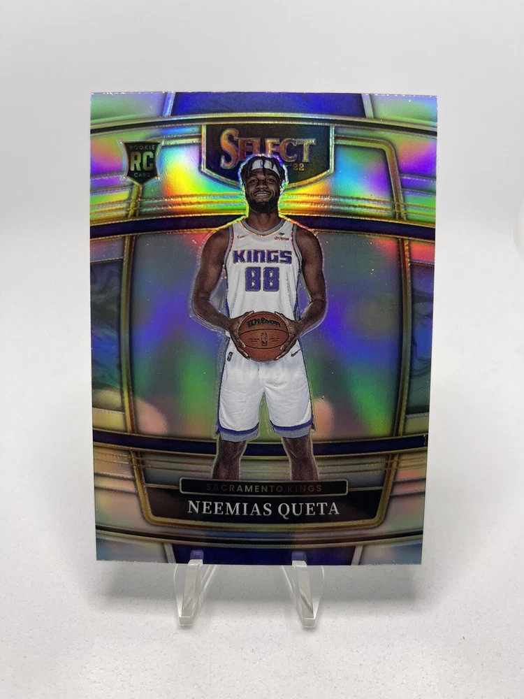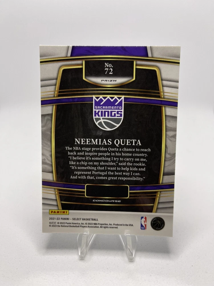This Neemias Queta trading card from the 2021 Panini Select set is a must-have for any Sacramento Kings fan or basketball trading card collector. The card features a silver parallel/variety and is a short print rookie card, making it a rare find. With a card number of 72, this trading card showcases the up-and-coming talent of Queta and his potential to make a name for himself in the National Basketball Association (NBA). Whether you're looking to add to your trading card collection or wanting to support your favorite team, this Neemias Queta rookie card is a great find.