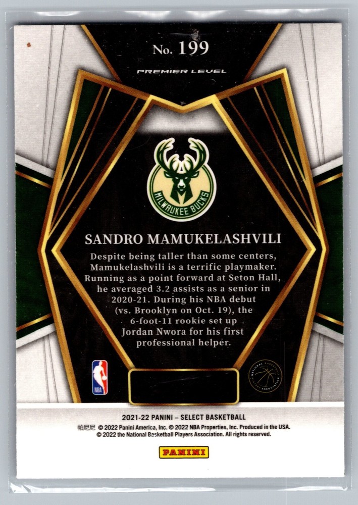 2021-22 Panini Select - Premier Level #199 Sandro Mamukelashvili (RC)All cards are in Excellent condition or better. Some scans may show scratching of the penny sleeve. Please feel free to reach out for additional pictures. Thanks for looking!
