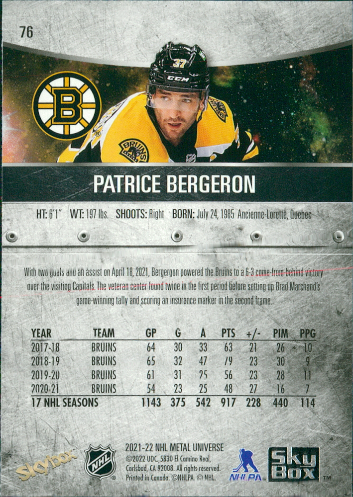 2021-22 Skybox Metal Universe - #76 Patrice Bergeron