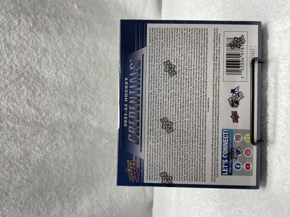 Type: Sports Trading Card Manufacturer: Upper Deck gtin13: 053334978187 Configuration: Box Season: 2021 Year Manufactured: 2021 Set: 2021-22 Hockey Credentials Upper Deck Card Size: Standard Sport: Ice Hockey UPC: 053334978187