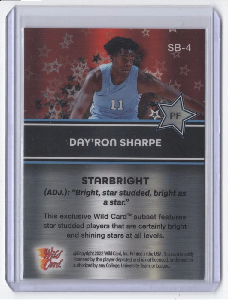 About Me Other Listings Feedback Add to Favorites Contact Me Striking Cards 901 2021-22 Wild Card Alumination Starbright Day'Ron Sharpe Brooklyn Nets #SB-4 No stock photo / These are real scans or pictures Details Description: Day'Ron Sharpe Category: Basketball Year: 2021 Product: Wild Card Alumination Starbright Team: Brooklyn Nets Card Number: SB-4 Dimensions: 4" x 3" SKU: BK B0001 R01 H (17) Listing By Kronocard trading cards software v2.7.0.1