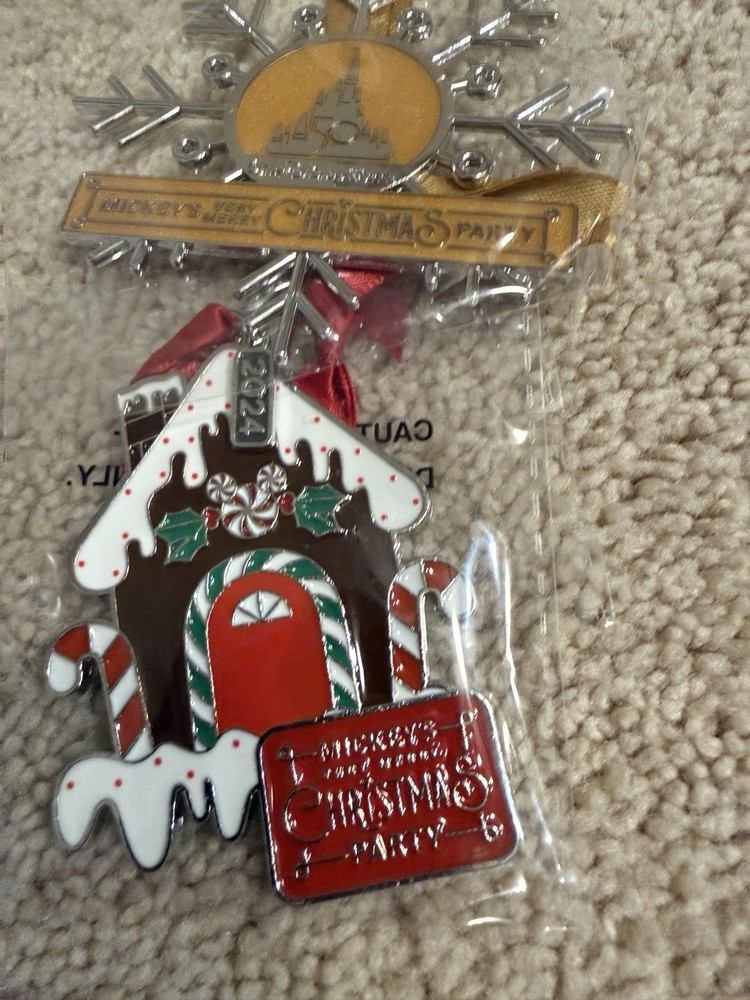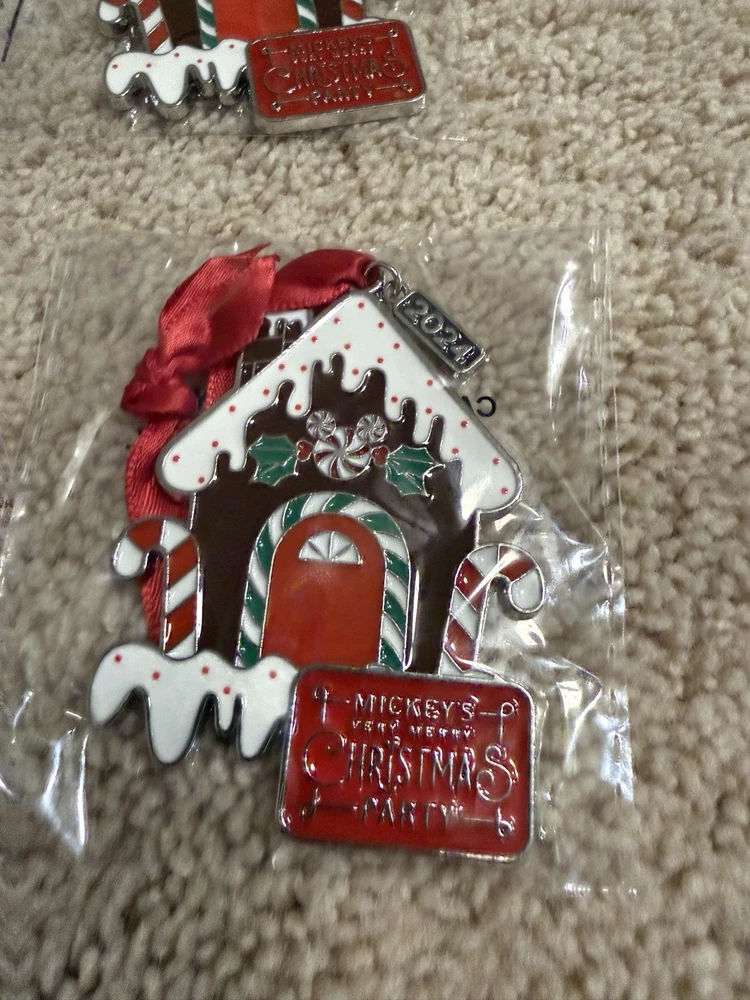 Collection of Mickey’s, very Merry Christmas party gifts Includes two gingerbread house ornaments from 2024 One snowflake ornament from 2022 One art print All items are in new condition… Print had a small fold in upper left corner. It has been smoothed out and is not noticeable unless you were really looking