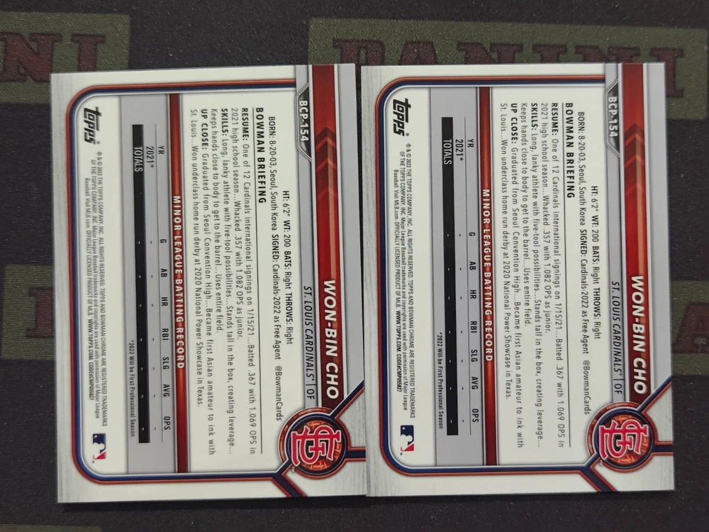 Manufacturer: Bowman Year Manufactured: 2022 Autographed: No Language: English Season: 2022 Card Size: Standard Set: 2022 Bowman Type: Sports Trading Card Sport: Baseball League: Major League (MLB) Player/Athlete: Won-Bin Cho Country/Region of Manufacture: United States Number of Cards: 2 Features: 1st Edition, Rookie