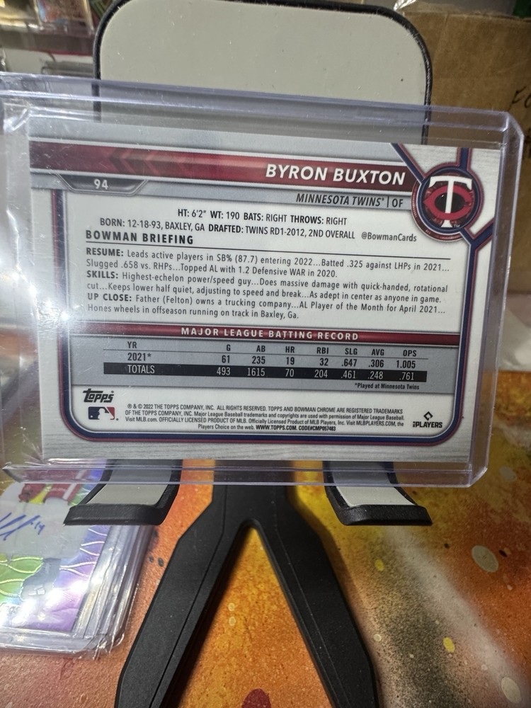 2022 Bowman Chrome Sapphire Orange Byron Buxton #94/75