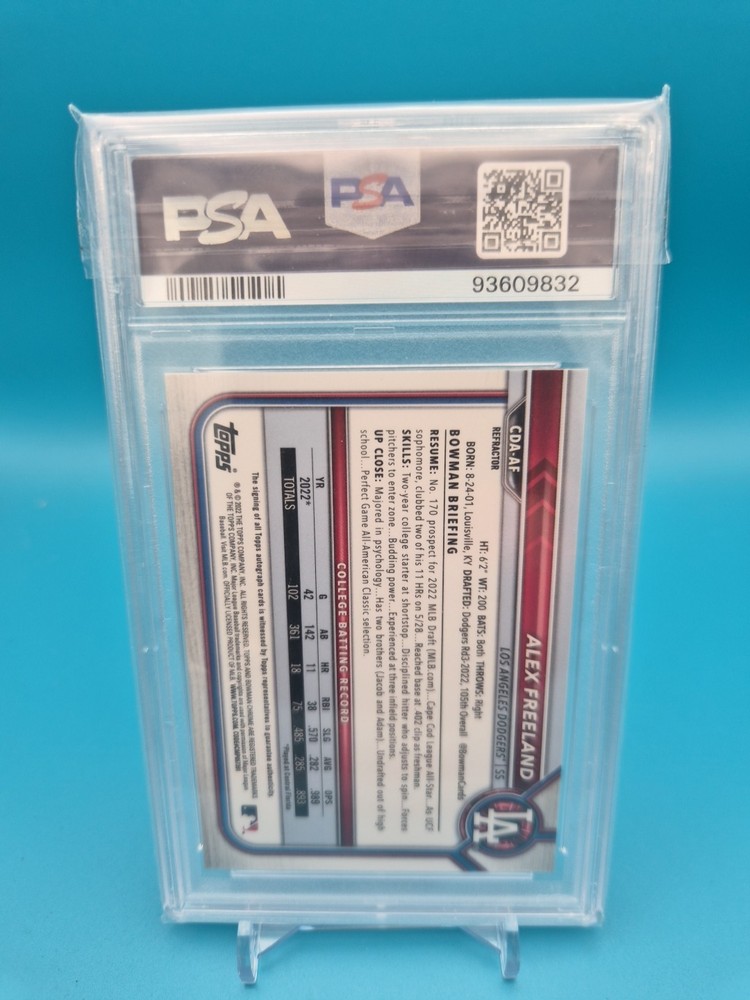 ALEX FREELAND 2022 1st Bowman Chrome Draft Refractor Auto #/499 PSA 10ð¥DODGERS
