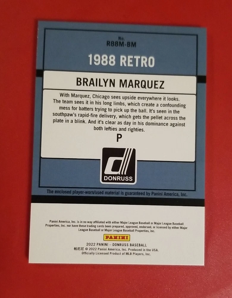 2022 Donruss Retro 1988 Materials Brailyn Marquez #R88M-BM Jersey FREE SHIPPING. You Will Receive The Item(s) Pictured. If You Have Any Questions Or Concerns Please Let Us Know. If You Are Purchasing Multiple Items Could You Please Pay In One Transaction. It Makes Things Easier And Also It Saves The Seller A Little In Fees. Thank You.