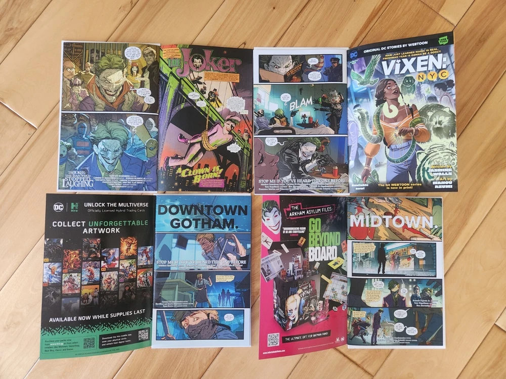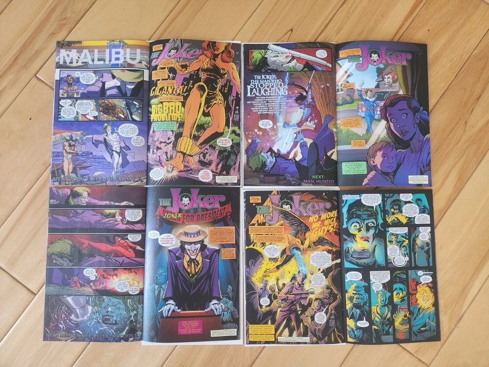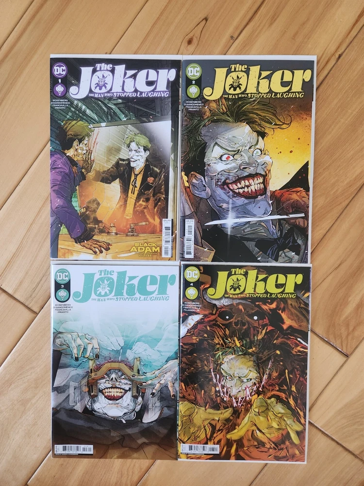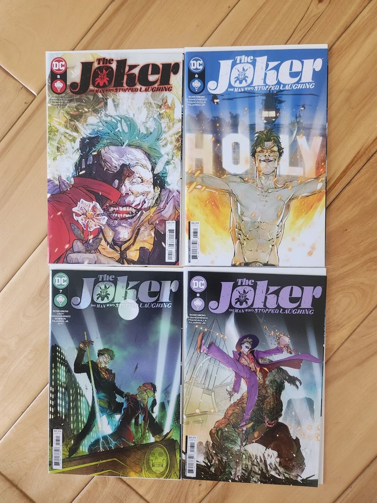 This 12-issue comic book lot features the Joker in a modern age storyline titled "The Man Who Stopped Laughing." The series is published by DC Comics and includes cover art by Carmine Di Giandomenico. The issues are all high grade 9.6 near mint+ and feature cover A. The series is written by Matthew Rosenberg with art by Francesco Francavilla and Carmine Di Giandomenico. It includes a range of features, including first printing and a set of issues. The intended audience is general, and the language is English. This collectible item is perfect for fans of action and US comics. Bagged and boarded shipped in Gemini mailer. USPS.