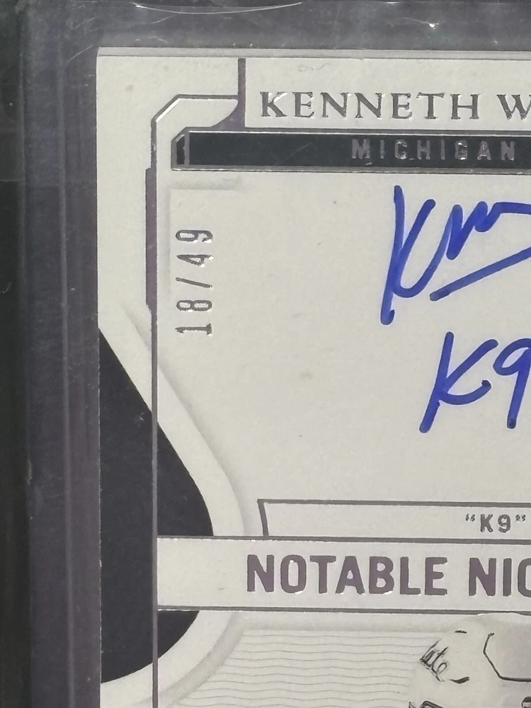2022 Kenneth Walker National Treasures Collegiate Notable Nicknames "K9" /49 RC Will ship in top loader same Or next day.