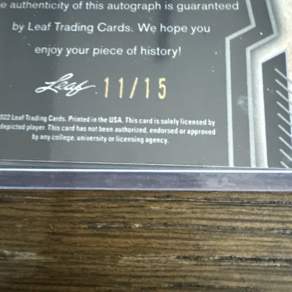 This is a 2022 Leaf Valiant Football trading card featuring an autograph from Jayden Reed, signed in a Label or Sticker format. The card is a Purple Scope parallel variety, with a limited print run of only 15 copies, and it showcases a Jersey Match design. It is a Take it to House Rookie Autograph insert card, serial numbered as #11/15, making it a rare and highly sought-after collectible for fans of the Green Bay Packers and Michigan State Spartans wide receiver.