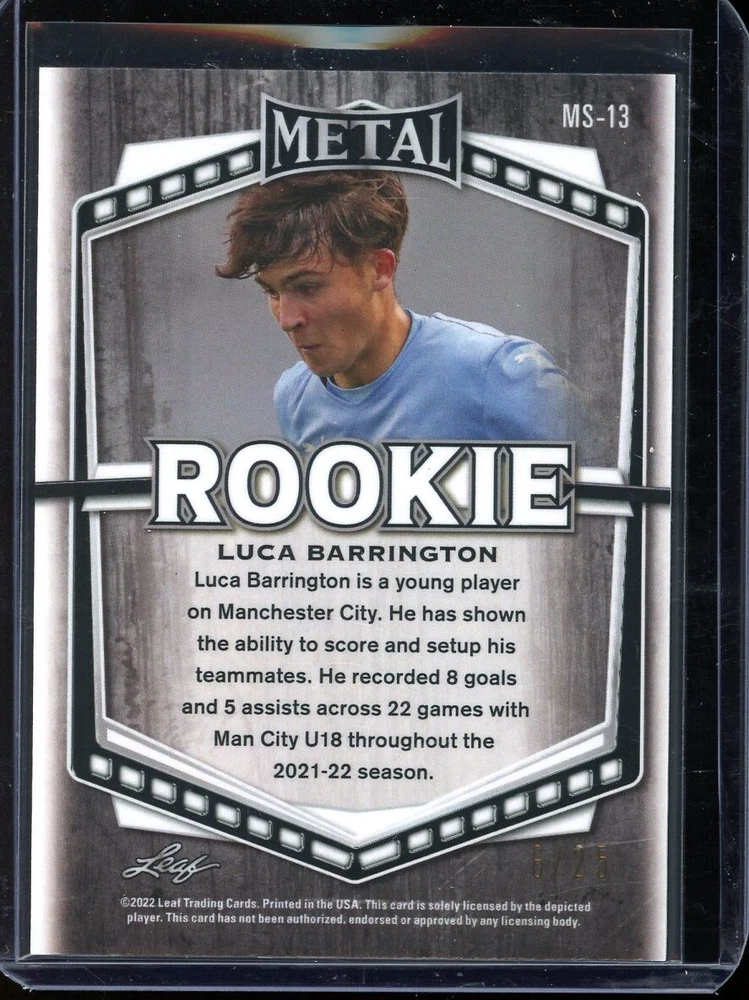 2022 Leaf Metal Soccer Purple Prismatic Luca Barrington Rc #MS-13 (6/25)