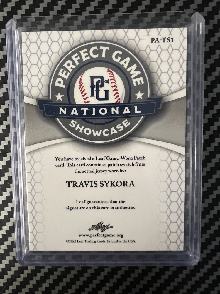 2022 Leaf Perfect Game patch auto of Travis Sykora. 5/10 look at the laundry tag patch. Nice card