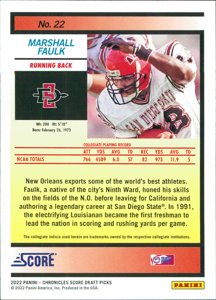 Type:Sports Trading CardTeam:San Diego State AztecsSeason:2022Country of Origin:United StatesManufacturer:PaniniLeague:National Collegiate Athletic Association (NCAA)Sport:Football