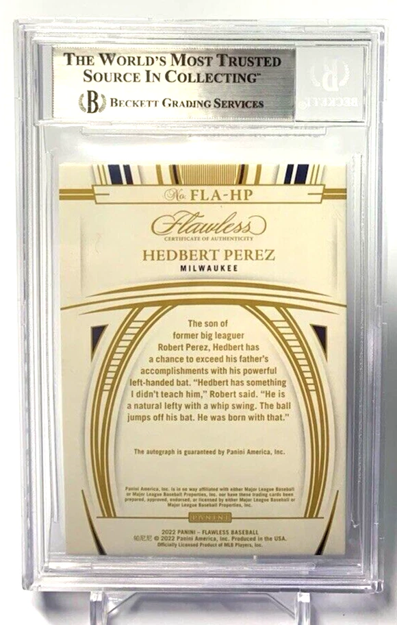 2022 Panini Flawless Autographs Sapphire #FLA-HP Hedbert Perez 4/7 BGS 9 Mint