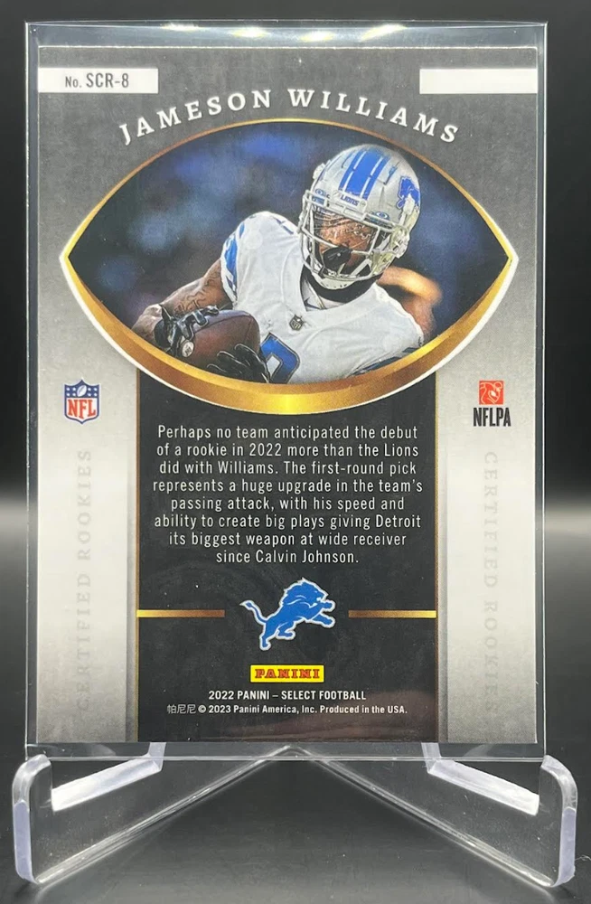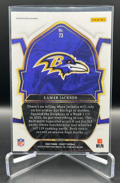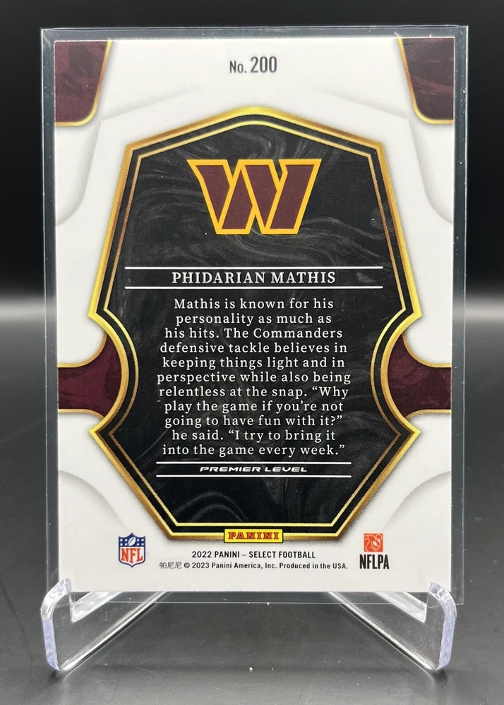 This 2022 Panini Select Football card is a must-have for any fan of the National Football League (NFL). With a variety of parallel, base set, rookie, and insert features, this card is sure to impress. The card is standard size and manufactured in the United States by Panini, a well-known sports trading card manufacturer. The card is an original and licensed product from the 2022 season of football. It is not autographed and is part of the 2022 Panini Select set. The card is perfect for collectors and fans alike who are looking to add a unique and valuable piece to their collection. How it Ships: Inside a penny sleeve and top loader sealed with painter's tape and surrounded by cardboard.