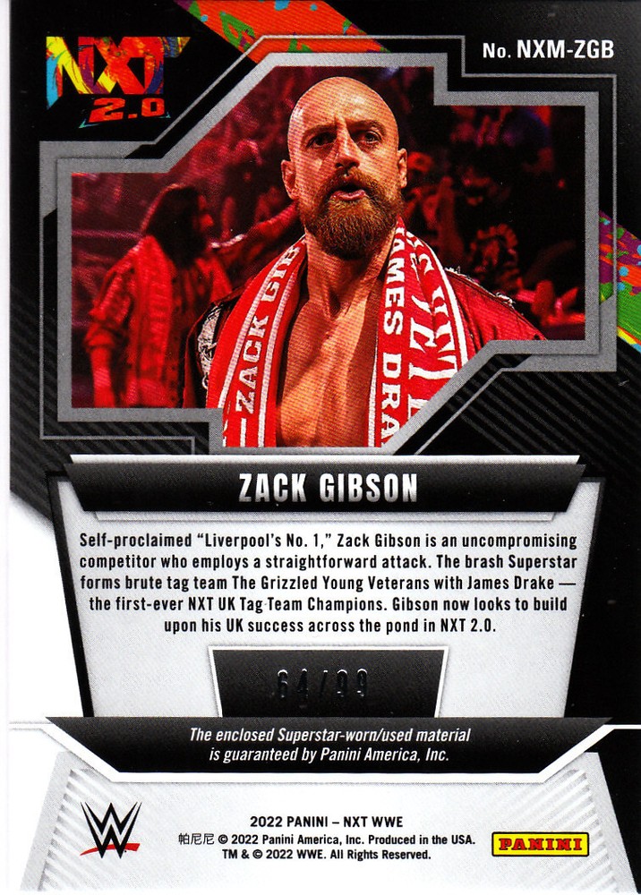Home2022 Panini WWE NXT Zack Gibson Red /99 Memorabilia Card NXM-ZGB