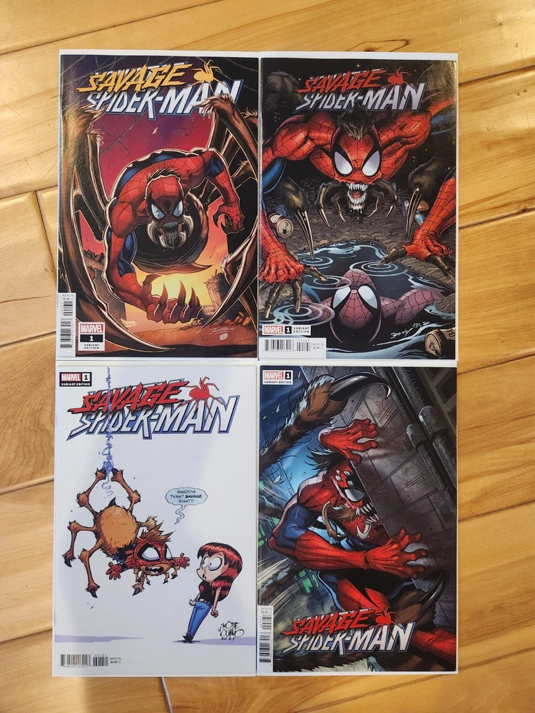 This is a fantastic lot for any fan of the Savage Spider-Man series! Included in this mixed lot are the Variant Editions of the first issue with covers by Logan Lubera, Ron Lim, Skottie Young, and Mark Bagley. These comics are in excellent condition, with a grade of 9.6 Near Mint+. The lot features the amazing work of artists and writers such as Nick Bradshaw, Joe Kelly, and more. It's a great opportunity to add to your collection without having to worry about the condition of the comics. Don't miss out on this fantastic lot of Savage Spider-Man comics! Bagged and boarded shipped in Gemini mailer.