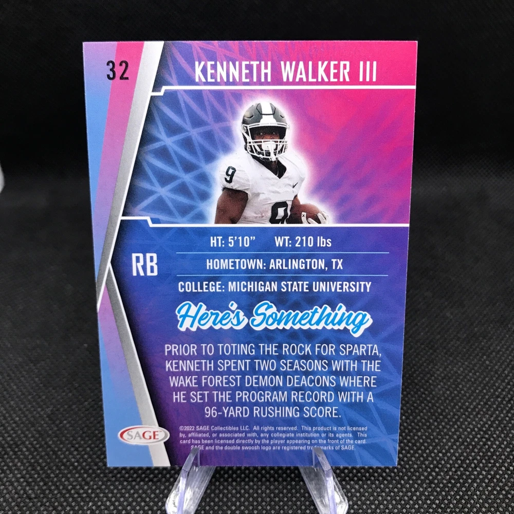 2022 Sage Kenneth Walker III RC! #32 Seattle Seahawks/ Michigan State Spartans. Condition is Ungraded. Shipped with eBay Standard Envelope for Eligible Items up to $20.