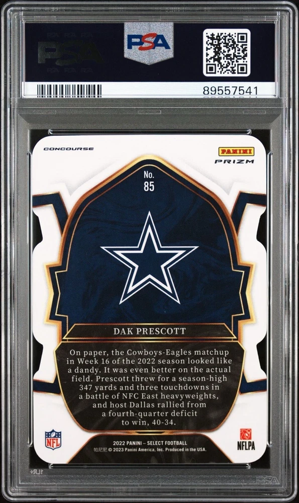 2022 Select Dak Prescott Die-Cut Black/Red Prizm Concourse #85 PSA 10 POP 5
