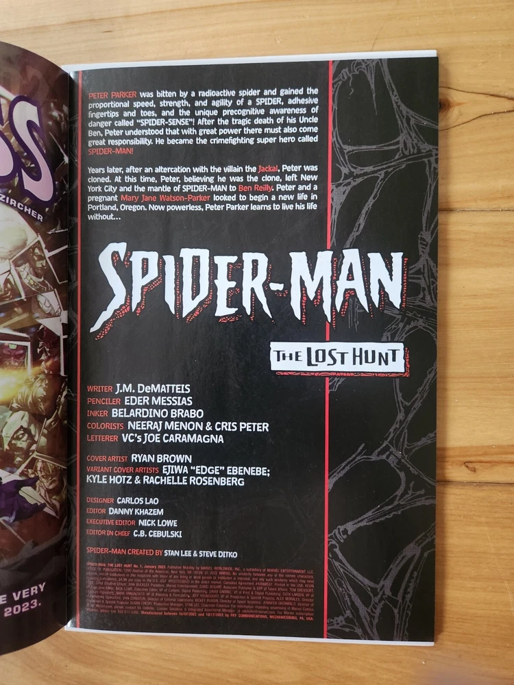 2022 Spider-Man: The Lost Hunt 1C: Edge Variant. High Grade 9.6.