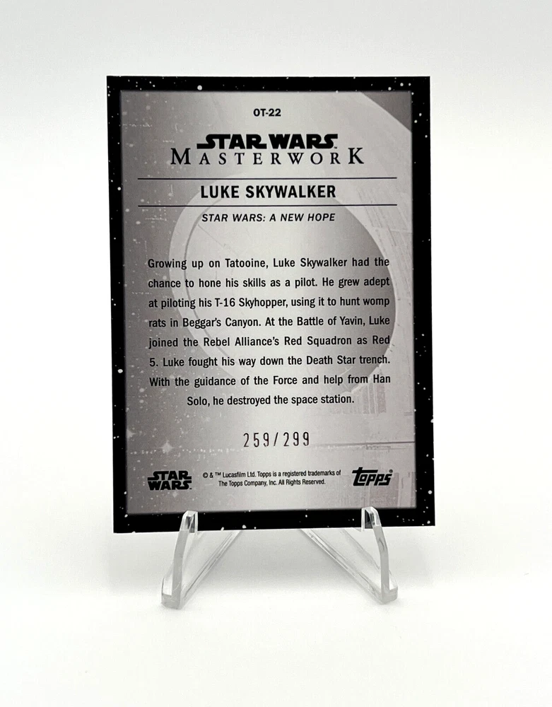 2022 Star Wars Masterwork trading card featuring Luke Skywalker in an Original Trilogy Poster Rainbow Foil parallel serial numbered #259/299. Thank you for checking out the Potomac River Pirates!