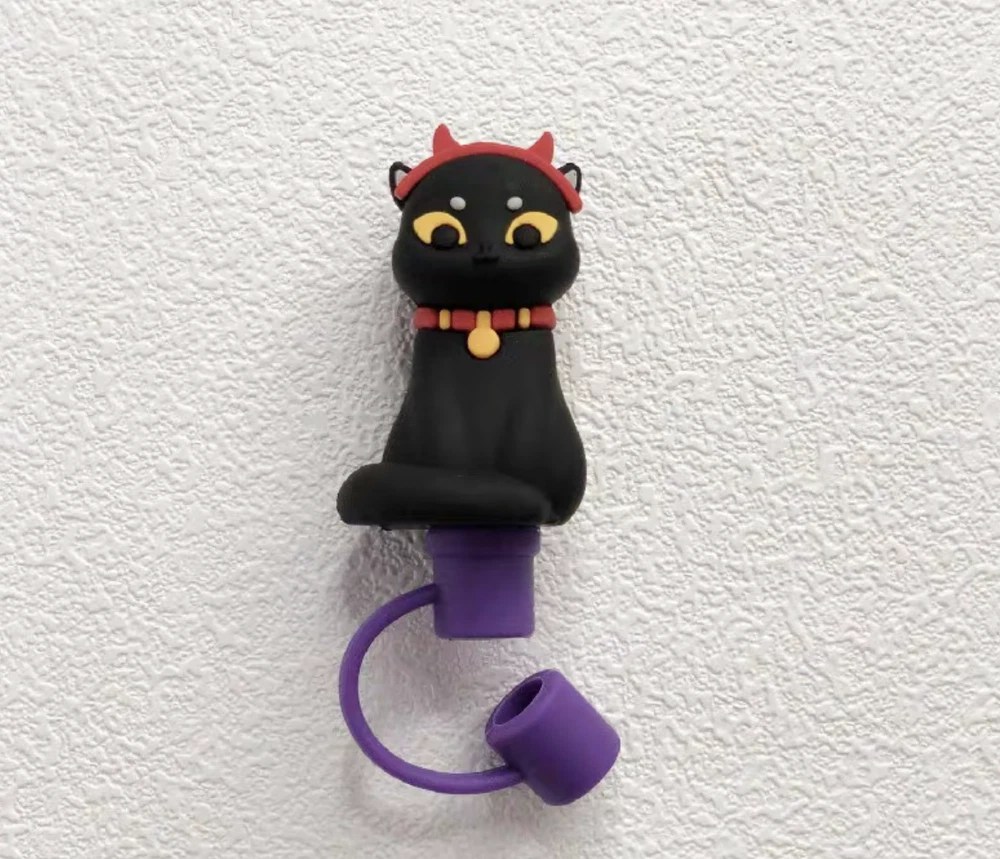 2022 Starbucks Black Cat Straw Plug Leak Proof & Dustproof Plug Reusable Toppers