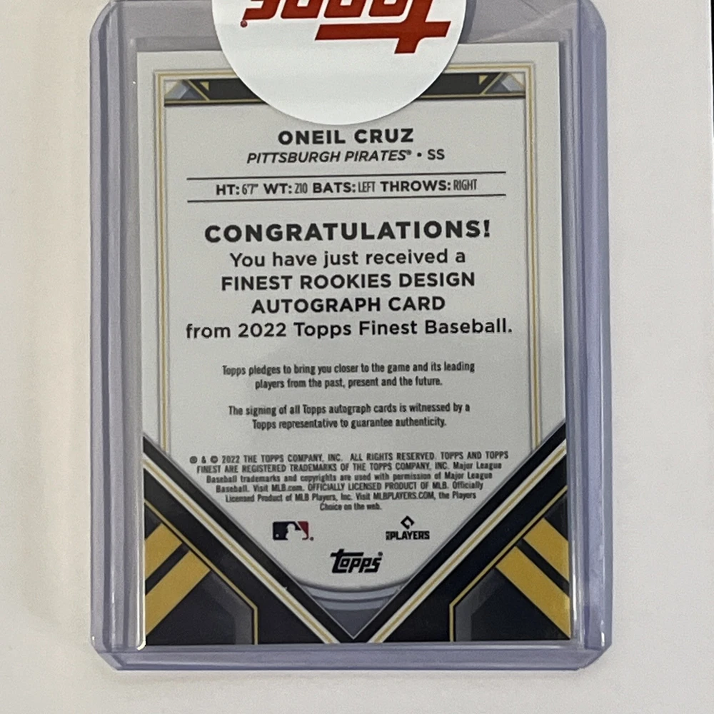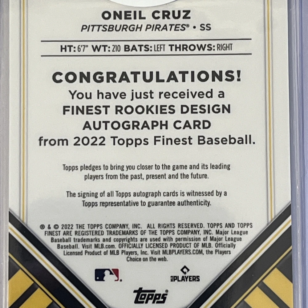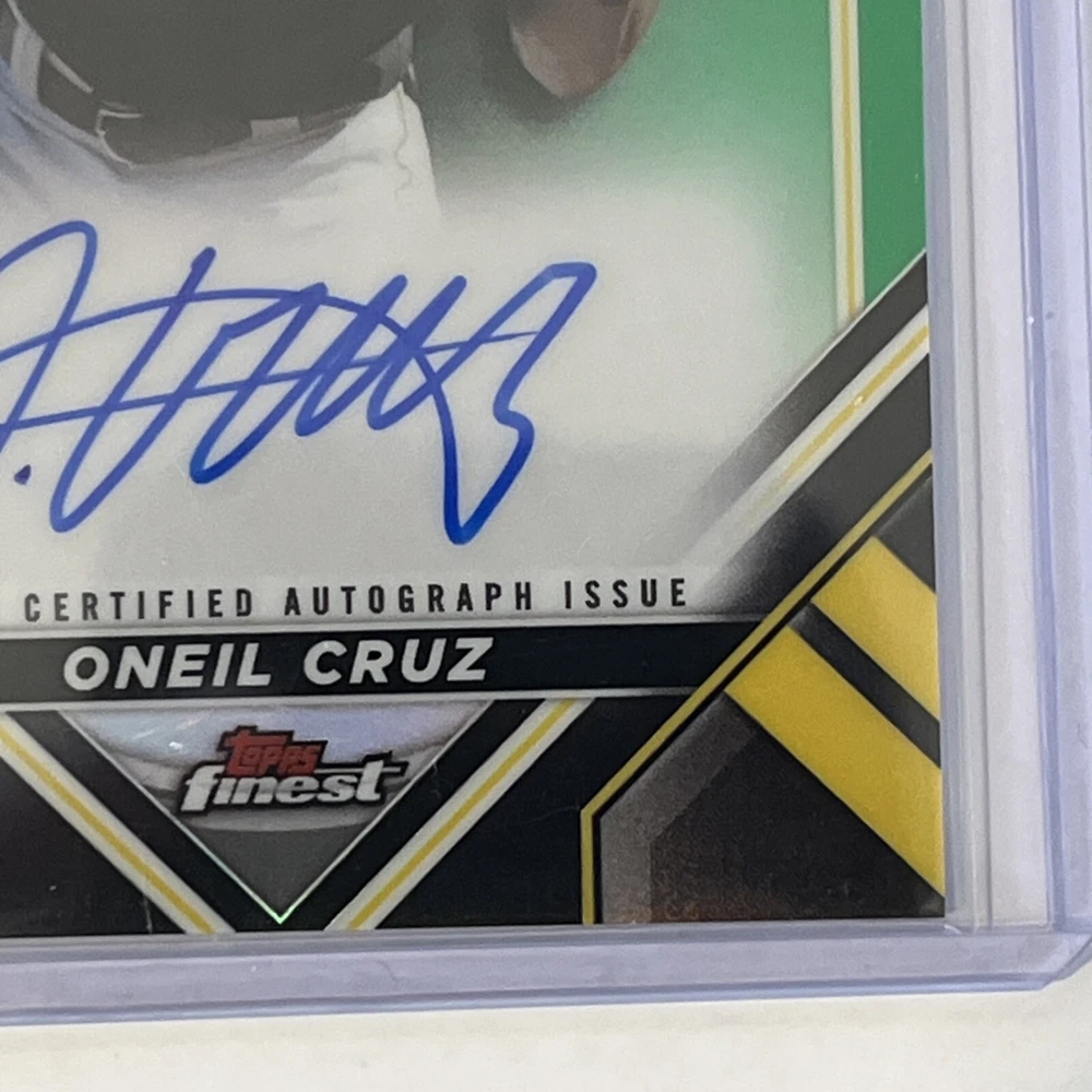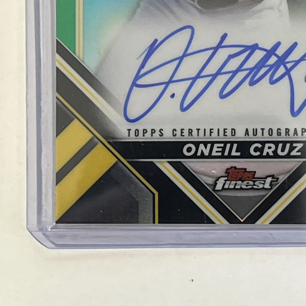 This listing is for the pictured card 2022 TOPPS FINEST Rookie Design Variation ONEIL CRUZ RC Auto Green Refractor /99 Please note that condition is subjective. Use the photos to determine condition based you your own knowledge. I will always offer combined shipping discounts when possible. If combined shipping does not auto populate, please feel free to message me. I will also do my best to catch any listing errors and refund portions of shipping & handling fees if there is an over charge. All single cards under $10 will be shipped eBay Standard Envelope with post office to post office tracking. Please note, this service is offered by eBay using a third party company. There can be delays in the process. Please have patience when ordering. I will always do my best to have cards out within 24 hours. ESE shipping will be in a white cardboard envelope. Cards will be in a penny sleeve and semi rigid top loader and a top loader bag / team bag. Please note, any single card listed and/or sold for over $250 will automatically be sent to eBay Authentication based on eBay's policies. Combined shipping is not available in combination with these cards. eBay will not allow it. Also, please understand that there will be a delay in receiving these cards traveling through authentication. As always, please feel free to send a message with any questions or concerns. I want all of my customers to have an enjoyable experience. Thank you.