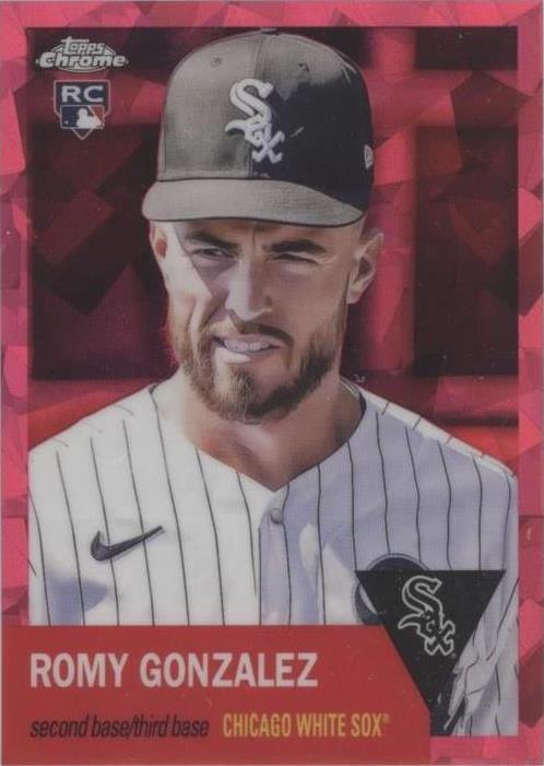 Elevate your sports card collection with the 2022 Topps Chrome Platinum Romy Gonzalez Rookie Card #127. This limited edition piece, with a print run of just 100, is a must-have for fans and collectors alike. Featuring the rising star in his Chicago White Sox gear, this card is part of the esteemed Topps Chrome set, renowned for its quality and design. This particular card stands out with its Fuschia Atomic parallel variety, providing a unique holographic sheen that catches the eye. It comes serial numbered, ensuring its exclusivity and making it a valuable addition to any MLB collection. Notable for its 'Short Print' status, this card is a true collector's edition that celebrates the talent of Romy Gonzalez and the nostalgia of the sport.