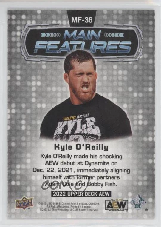 2022 Upper Deck AEW All Elite Wrestling - Main Features - Red #MF-36 Kyle O'Reilly Qty Made: 50 - Wrestling Card - Featuring Kyle O'Reilly Search for more: 2022 Upper Deck AEW All Elite Wrestling Search for more: 2022 Upper Deck AEW All Elite Wrestling - Main Features - Red View all of our Listings Auctions Buy It Now About Us Located in the beautiful Pacific Northwest, COMC (Check Out My Cards) is the world's largest consignment service for trading card singles. More than 10,000 people have used our consignment service to list over 50 million trading cards. We currently house 20 million cards, each listed for sale with front and back images of the actual card. Find out how we can help you consign your items on eBay by contacting us through eBay messaging. COMC -- "The Safe & Easy Way to Buy & Sell" Representative Image - Select Specific Item above to see image of actual item Representative Image - Select Specific Item above to see image of actual item Raw Condition for Modern Cards Unless otherwise noted, raw modern cards are listed in Near Mint-Mint condition or better. A NM-MT card appears to be Mint at first glance, but upon closer inspection, may exhibit some of the following: minor print defects (e.g. roller marks, print line, dimple), minor scratches, slight edge wear, and slight corner wear. Centering is clearly visible in the images provided and does not factor into our condition assessment. Raw Condition for Vintage Cards Unless otherwise noted, raw vintage cards are listed in Excellent condition or better. An EX card may exhibit some of the following: minor rounding of corners, surface wear, print defects, light scratches, and slight edge wear/chipping. Centering is clearly visible in the images provided and does not factor into our condition assessment. Domestic Shipping Combined shipping for multiple items is available. To receive combined shipping, please ensure all desired items are in your eBay shopping cart before proceeding to checkout. eBay limits orders to 40 items per order. We automatically combine multiple orders placed on the same day. If you place multiple orders on the same day, please contact us to request a refund of applicable shipping costs. Signature confirmation may be required on invoices over $400. Raw cards are shipped in toploaders. International Shipping COMC offers eBay's International Shipping (EIS) for international orders under $2,500* (see country exceptions below). All duties and import fees are paid at checkout; in the rare event that there are additional import fees upon delivery, these are borne by the buyer. EIS packages route through a shipping hub in Erlanger, KY before shipping to their final destination. Please note that EIS does not allow for combined shipments. The shipping rates are determined by eBay and cannot be adjusted. *Maximum sale price exceptions: Colombia, Kuwait ($2,000); Taiwan ($1,539); Chile, Costa Rica, Guatemala, Honduras, Trinidad and Tobago ($1,000); Antigua and Barbuda, Aruba, Belize, Dominica, Grenada, Philippines, Saint Kitts and Nevis, Saint Lucia, Montserrat, Turks and Caicos Islands ($500); Dominican Republic, El Salvador ($200). Please request a shipping quote through eBay messaging for orders that exceed the maximum sale price supported by eBay's International Shipping. You will be responsible for all duties and import fees for international orders shipped outside the EIS. Raw cards are shipped in toploaders. Payment COMC does not accept offers on our cards through our eBay storefront. COMC utilizes eBay’s managed payments system. If you are experiencing difficulties making a payment, please contact eBay for assistance. Return Policy Returns are only accepted on the rare occasion the item is not as described. If you are making a return, please initiate the return process through eBay so a mailing label can be provided for you. Prior to listing, our expert team carefully assessed this item to represent it accurately. Please review the description and high-definition images prior to purchasing to ensure this item meets your satisfaction. We welcome you to contact us if you have further questions about this item. Trust and Integrity COMC carefully assesses each item consigned to us to prevent fraudulent items from entering the marketplace. If you believe an item offered on COMC may be fraudulent, please contact us with details so we can investigate the issue. Items we determine are outside our supported items policy may be removed. Last Modified: 12/17/2024 8:04:53 AM PDT