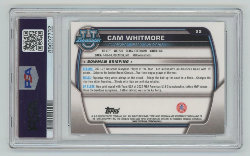 2022-23 Bowman U Base Cam Whitmore PSA 9 Villanova #22