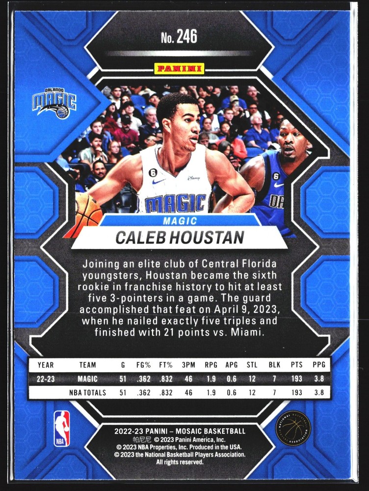 You will receive a Near Mint or Better, Caleb Houstan, 2022-23 Panini Mosaic, Rookie, 246 Orlando Magic card PLEASE NOTE: SOME CARDS THAT GO THROUGH OUR SCANNER MAY APPEAR TO HAVE LINES THROUGH THEM. THEY ARE NOT ACTUAL SCRATCHES, SIMPLY FALSE IMAGE LINES. WE WILL NOT INTENTIALLY SELL, DAMAGED CARDS. NEW CARDS LISTED DAILY ORDERS SHIP NEXT DA Y (Weekends as mail service is available) VISIT OUR STORE FOR MORE DEALS! USE THE SEARCH ICON IN THE STORE TO FIND YOUR FAVORITE TEAMS & PLAYERS! Be sure to save us as sellers to be the first to be notified when new and exciting cards are posted! Please note, we are not professional graders, and the condition of the card you purchased is highly subjective. Please refer to the high quality scans of the card you are viewing, and determine the condition of the card for yourself. Feel free to reach out with questions! All cards are in EX-NM+ condition, unless stated otherwise Chrome cards from various brands might have minor light surface scratches, which is typical with these type of cards. Any major, deep scratches or major surface issues will be noted, if present. We take pride in the condition of all of our cards, including commons. Our promise to you, is that we will not sell a card we would not buy ourselves. Of course things slip by, however customer service is our #1 Priority, and we are always here for a message for ANY, and ALL issues. Thank you very much for stopping by, feel free to reach out! - Titan (Son) & Andy (Dad)