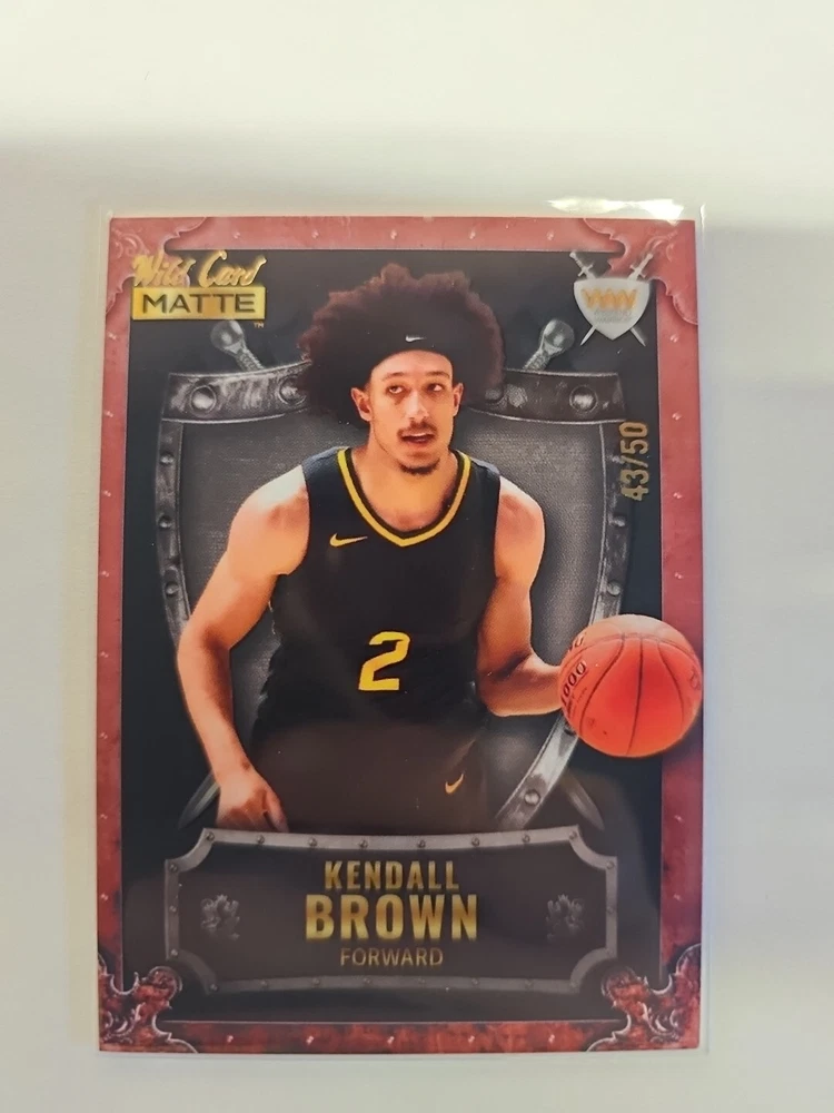 Elevate your collection with the 2022-23 Wild Card Matte Draft Weekend Warriors card featuring Kendall Brown. This limited edition sports trading card, numbered WW-27, boasts a unique White-Cobalt Frame / Blue Shield parallel/variety, making it a standout piece. As part of the coveted Weekend Warriors insert set, this card is serial numbered, reflecting its exclusivity with a print run of just 7/10. Crafted by Wild Card, this card captures the essence of the rookie basketball player, emphasizing his potential on the court. Manufactured in 2022, it represents a memorable moment from the 2022-23 season. For enthusiasts of sports memorabilia or collectors seeking to commemorate Kendall Brown's early career, this card is a worthy addition to any collection.