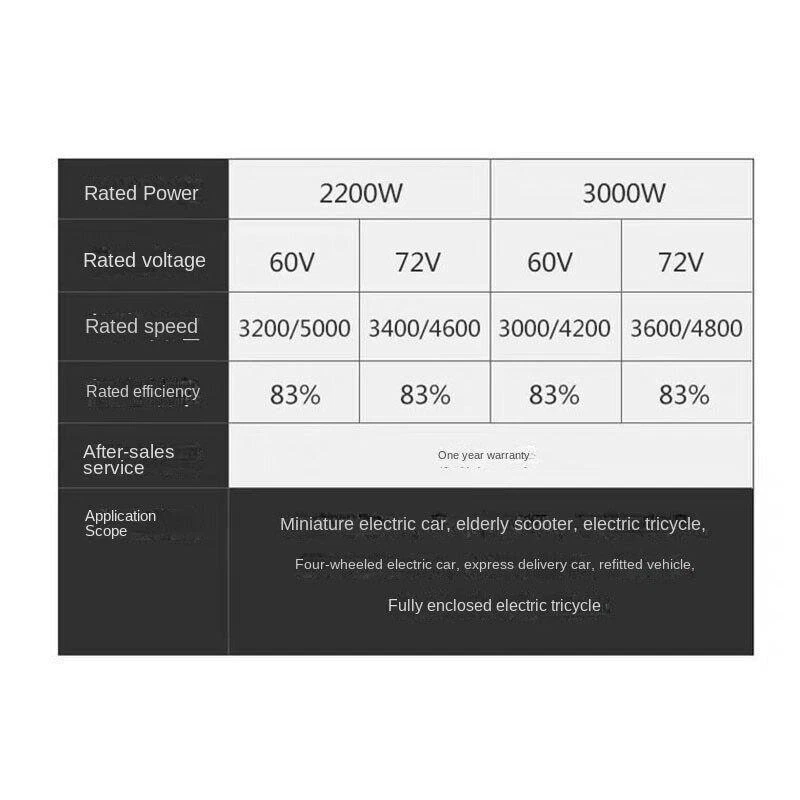 2023 60V/72V 3000W 4600RPM Permanent Magnet Brushless Dc Motor Electric Vehicles 60V/72V 3000W 4600RPM permanent magnet brushless DC motor differential speed electric vehicles, machine tools, DIY Accessories Motor Name: brushless motor Power: 3000W Rated voltage: 60V Maximum speed: 4600RPM Rated torque: 10.3 N.M Rated current: <58A Rated efficiency:> 83% Peak torque: 41 N.M Peak power: 5200W Applications: electric cars, scooters, other power tools. eBay Cross Border Trade powered by ChannelEffect