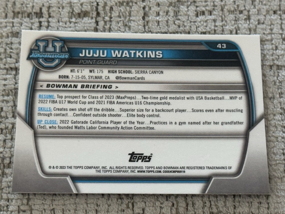 2023 JuJu Watkins Bowman U Chrome Base 1st Bowman #43. Condition is Ungraded. Shipped with eBay Standard Envelope for eligible items up to $20.
