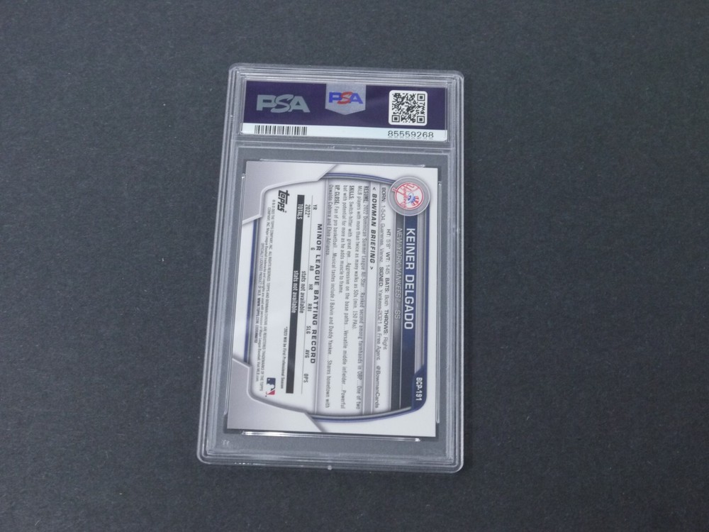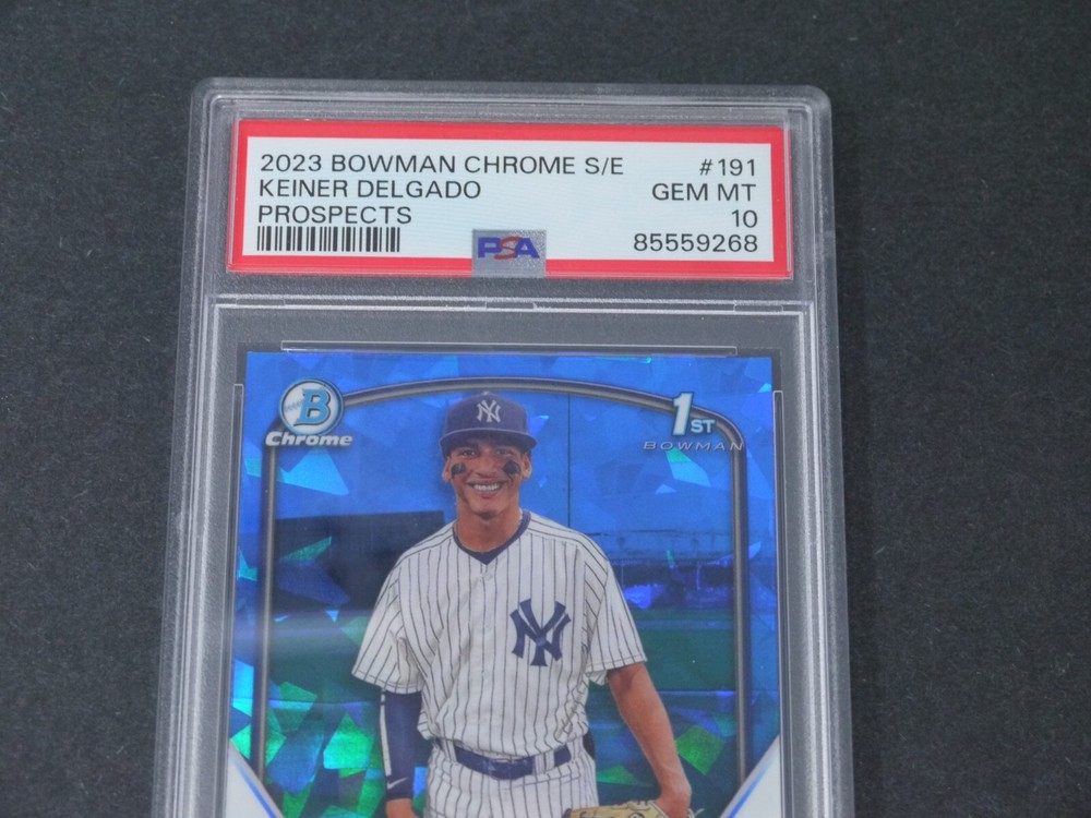 This 2023 Bowman Chrome sports trading card features Keiner Delgado, a promising rookie in the baseball world. The card number is BCP191 and it is part of the Shimmer parallel/variety set. Manufactured by Bowman, this GEM MT card is a must-have for any sports trading card collector. The card is from the 2023 season and is part of the 1st Chrome set. It boasts a beautiful design and showcases Delgado's talent as a player. This trading card is perfect for fans of baseball and sports trading card enthusiasts alike. Don't miss your chance to add this gem to your collection!