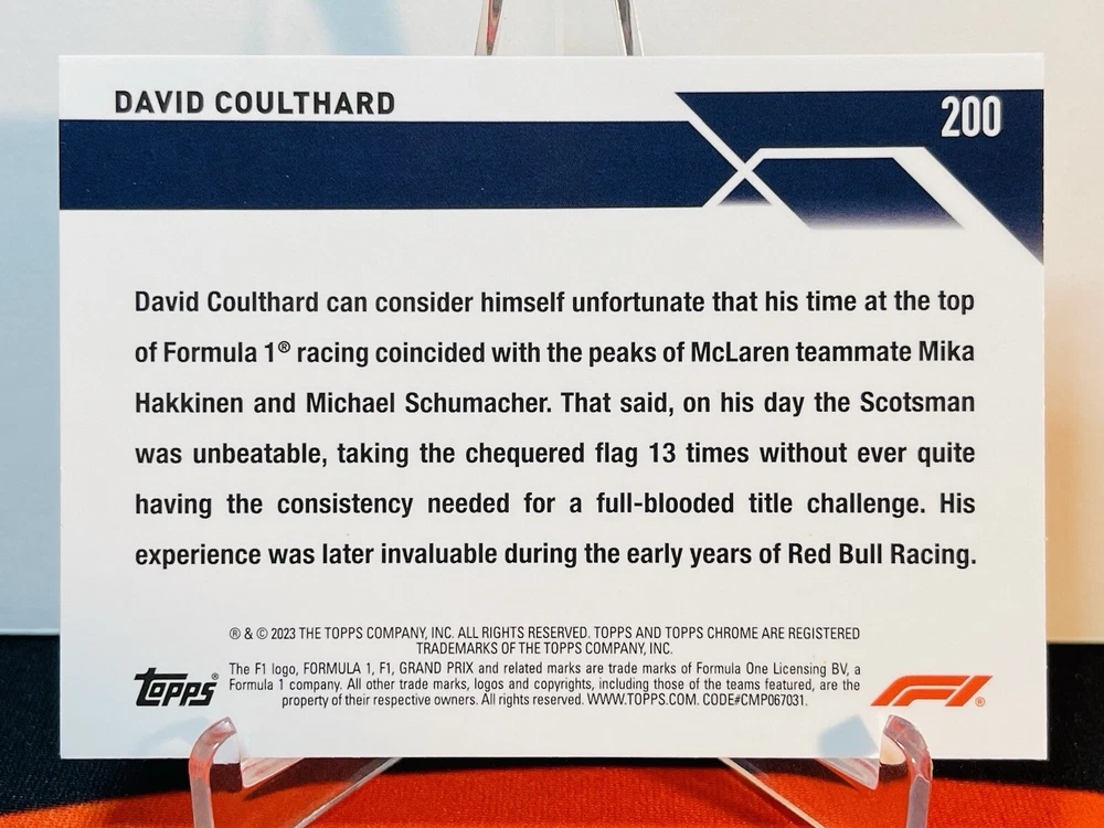 2023 Chrome Formula 1 David Coulthard Legends Mini-Diamond Refractor /299 SP F1