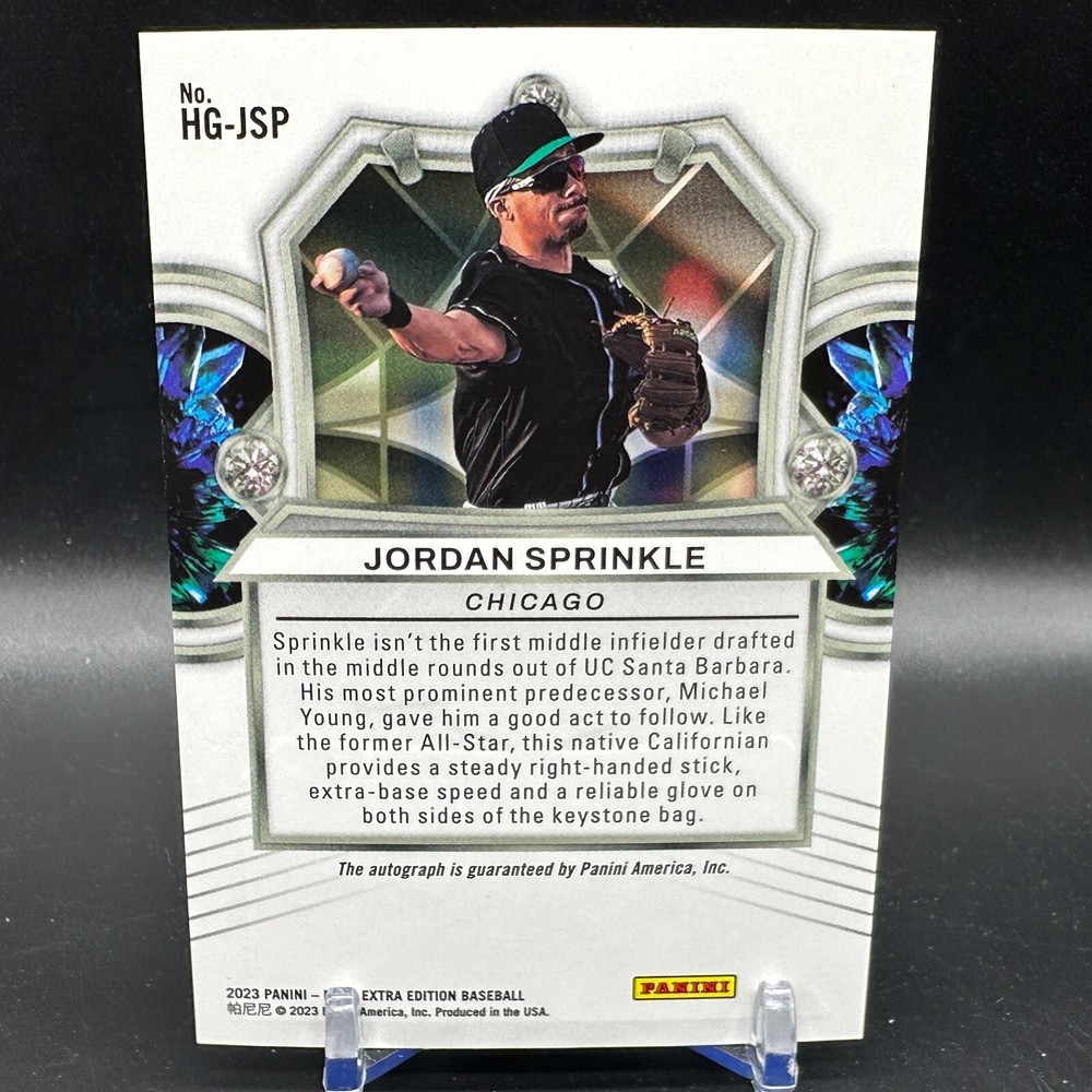 Jordan Sprinkle Auto 2023 Donruss Elite Hidden Gems Prospect Auto #HG-JSP Cubs Card is in good condition and please refer to pictures for full view from separate angles. Card is shipped in a sleeve and top loader in PWE with tracking. Ships next business day!